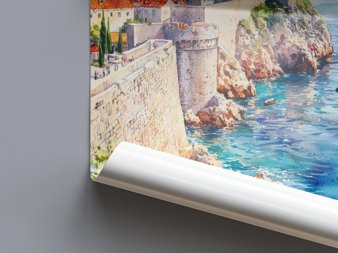 Dubrovnik Watercolor Poster Dubrovnik Travel Print Croatia Wall Art Old Town Painting Dubrovnik Souvenir Coastal Decor