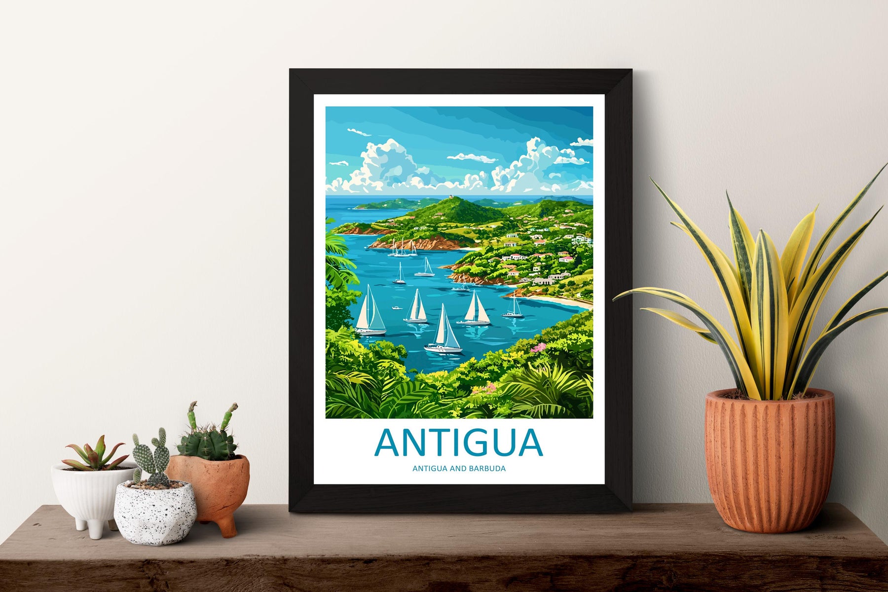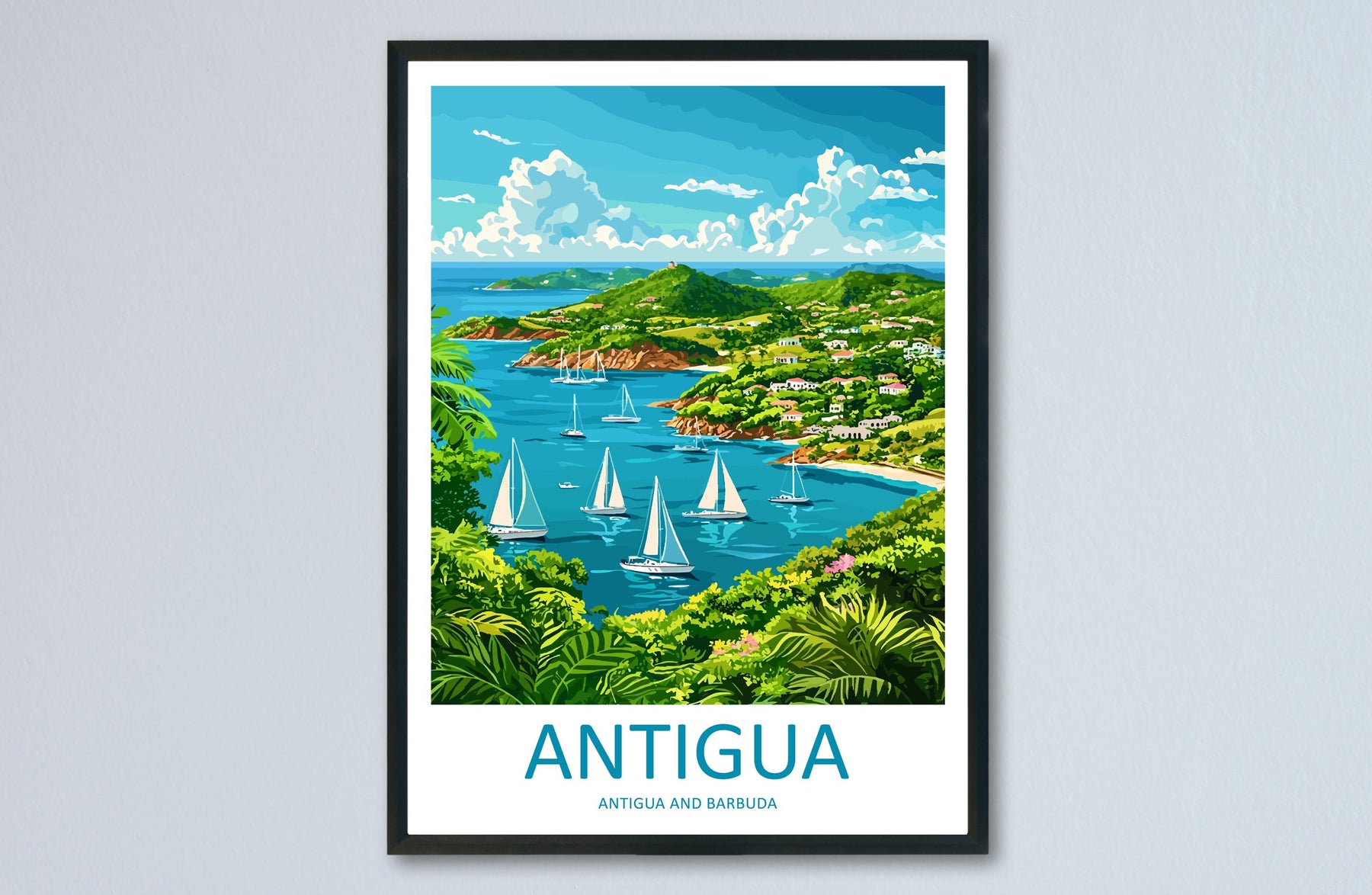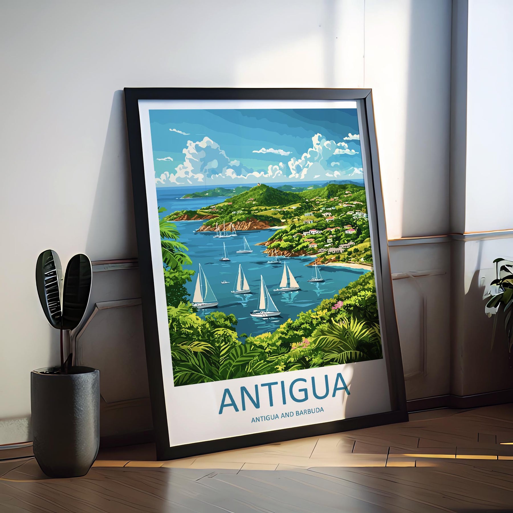 Antigua Travel Poster Caribbean Wall Art Beach Ocean View Tropical Decor Island Gift Souvenir Scene Paradise Landmark Art