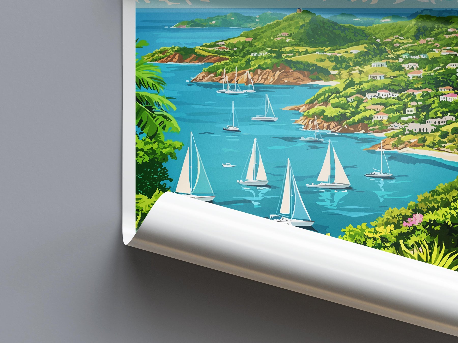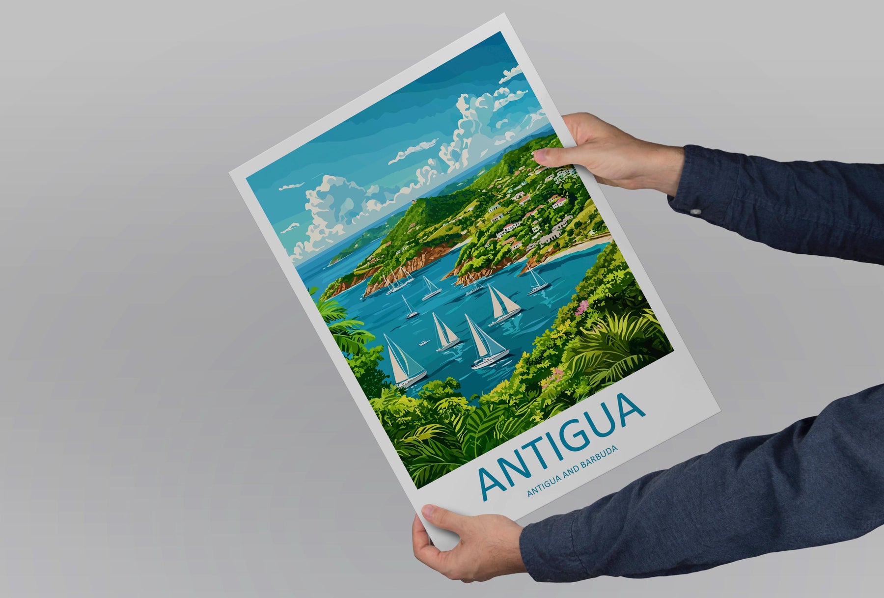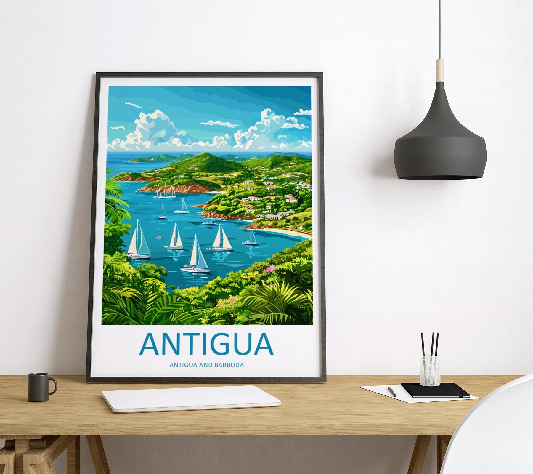 Antigua Travel Poster Caribbean Wall Art Beach Ocean View Tropical Decor Island Gift Souvenir Scene Paradise Landmark Art