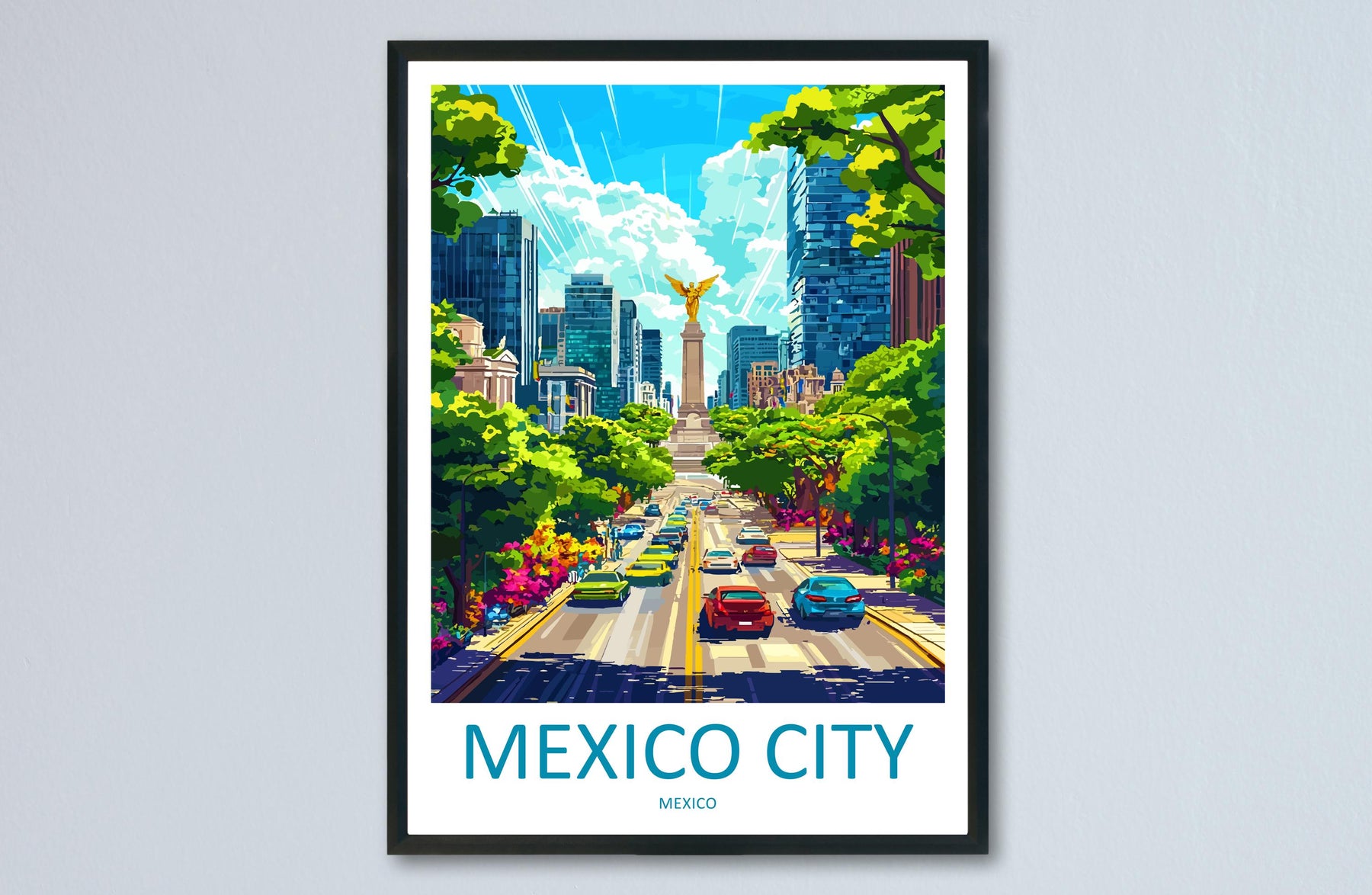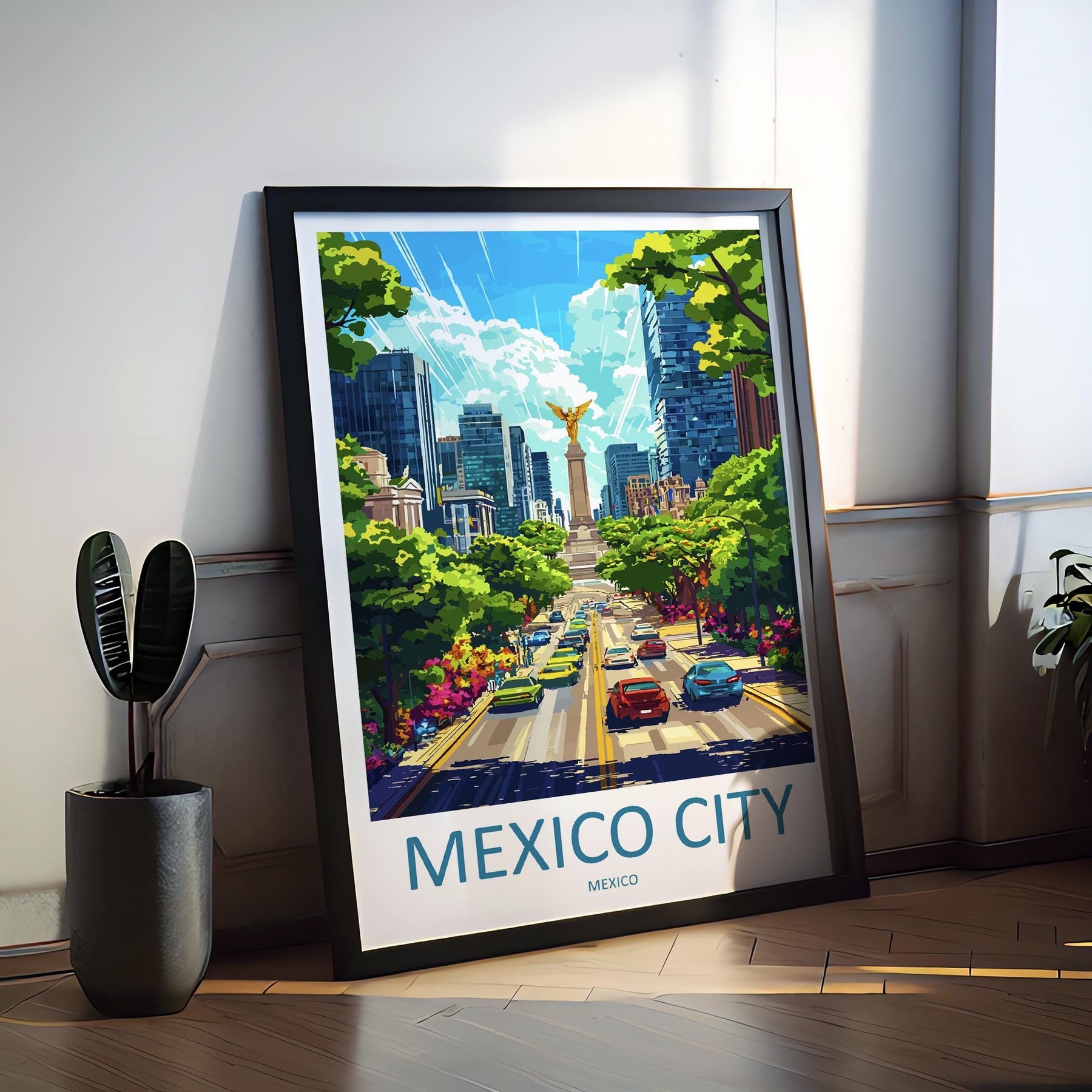 Mexico City Cartoon Travel Poster Mexico Wall Art City Print Historic Illustration Urban Decor Mexico City Souvenir Gift