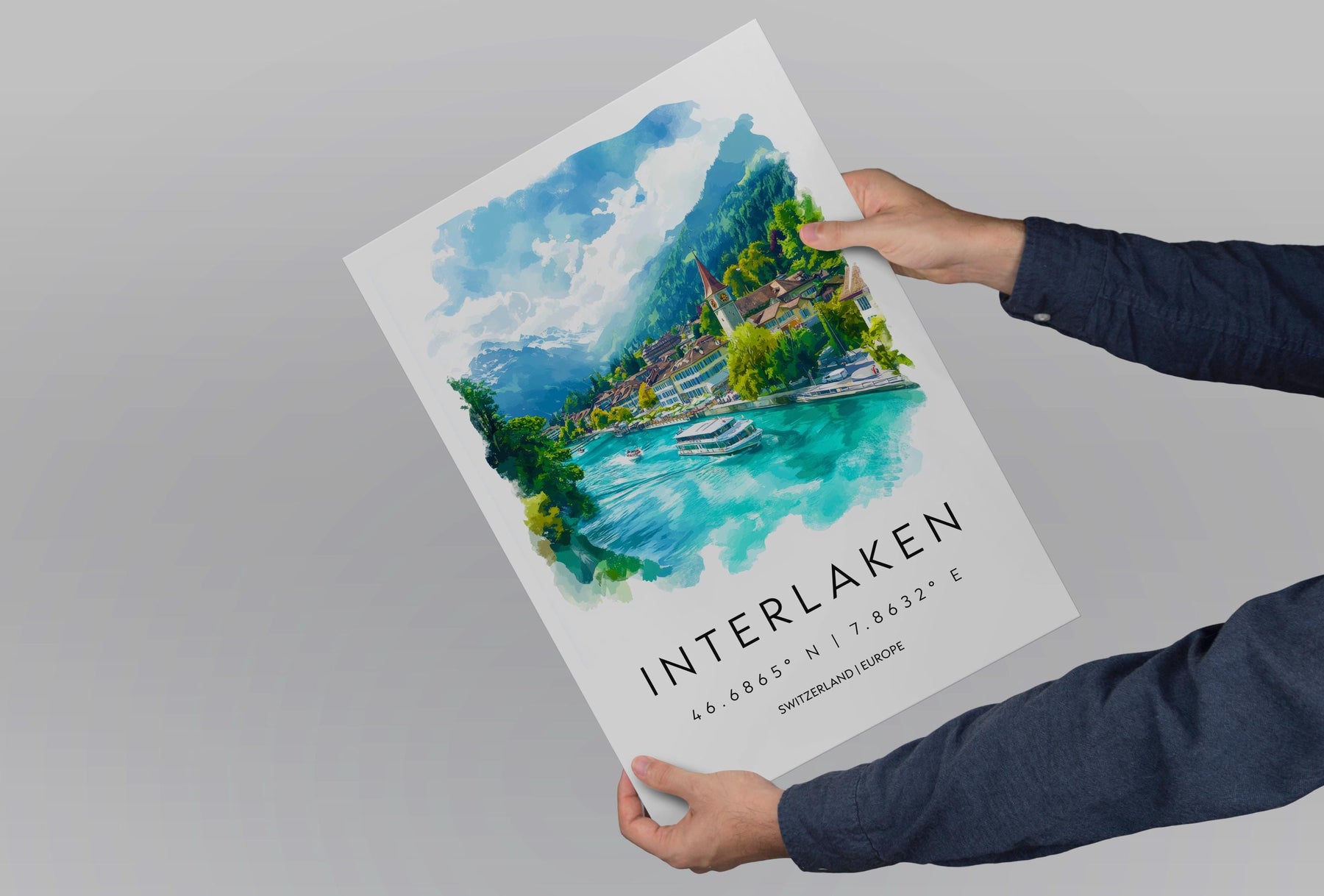 Interlaken Watercolor Poster Wall Art Interlaken Wall Decor Home Décor Interlaken Gift Switzerland Art Lover Gift, Travel Souvenir Print