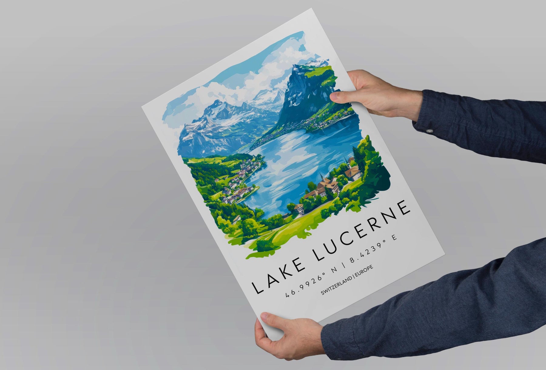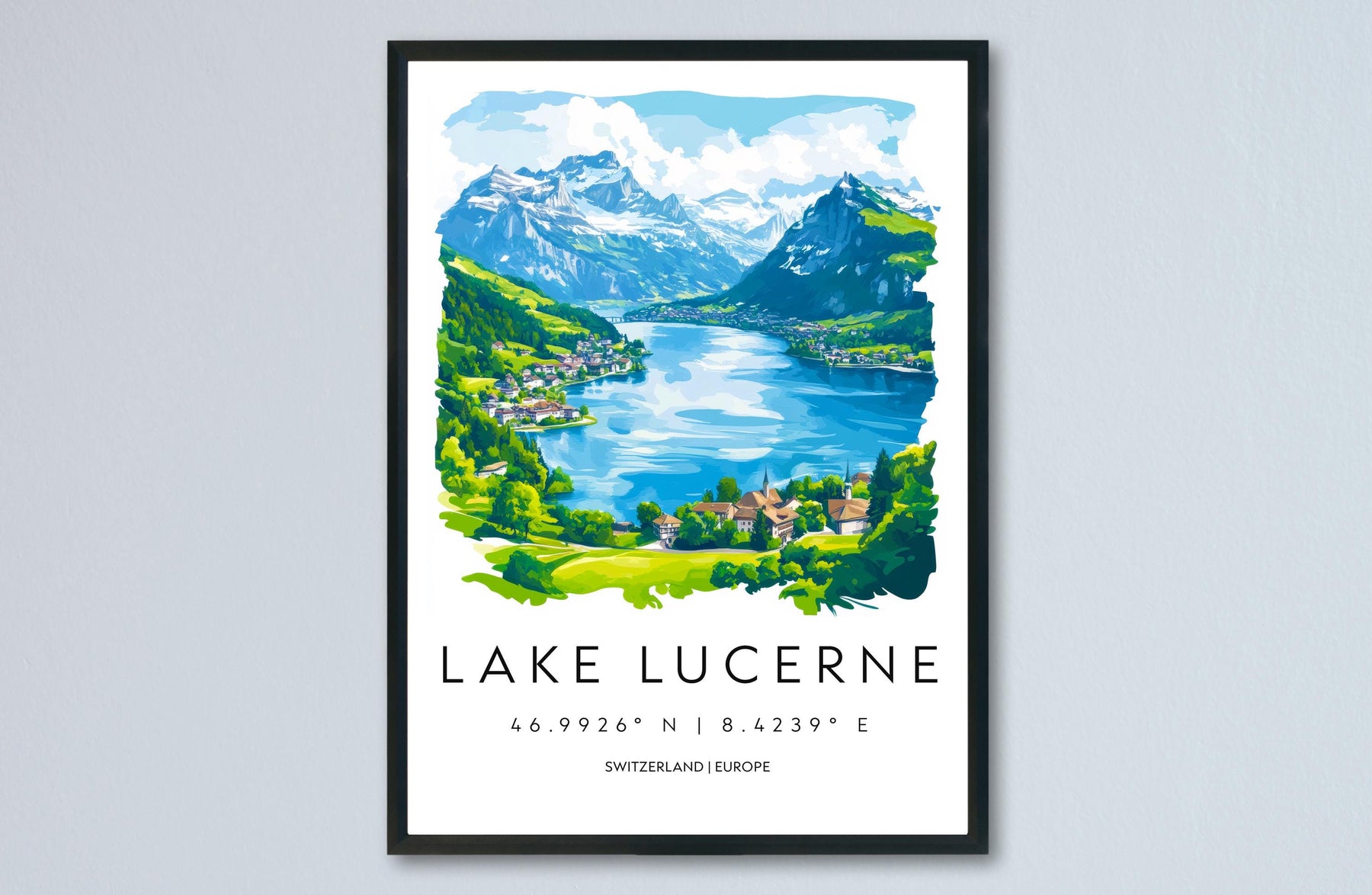 Lake Lucerne Watercolor Poster Wall Art Lake Lucerne Wall Décor Home Décor Lake Lucerne Gift Switzerland Art Lover Gift, Travel Souvenir