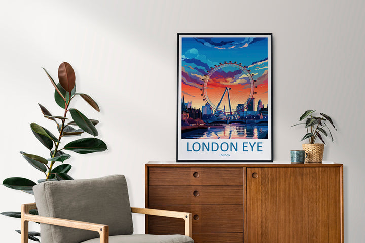 London Eye Travel Print Wall Art London Eye Wall Hanging Home Décor London Gift Art Lovers London Eye Art Lover Gift London Eye Travel Gift