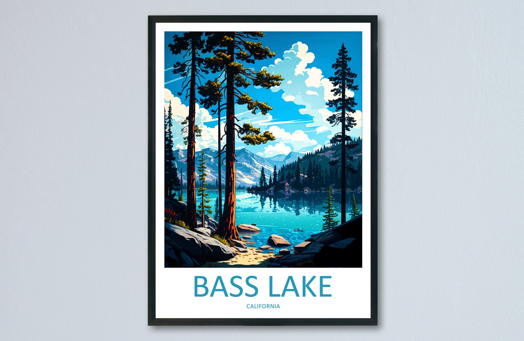 Bass Lake Travel Print Wall Art Bass Lake Wall Hanging Home Décor Bass Lake Gift Art Lovers California Art Lover Gift Bass Lake Art