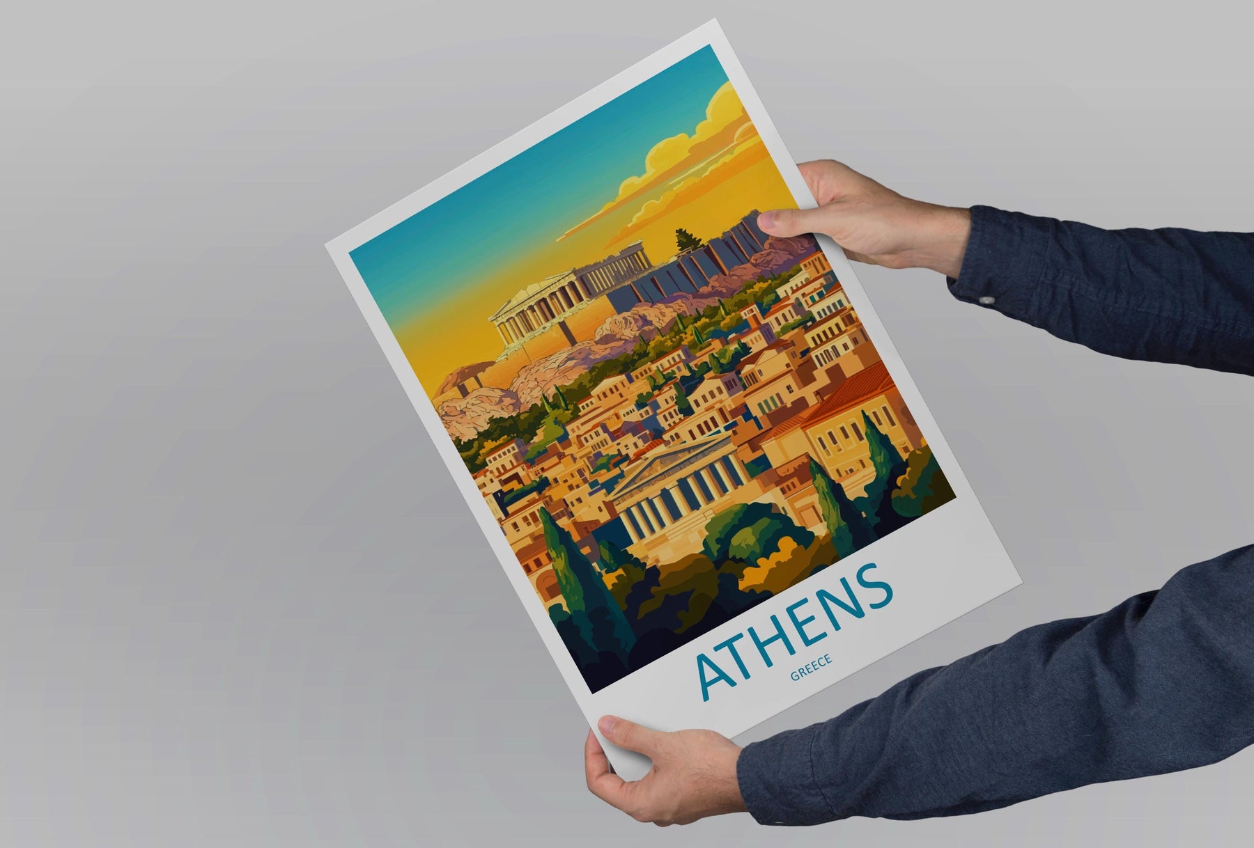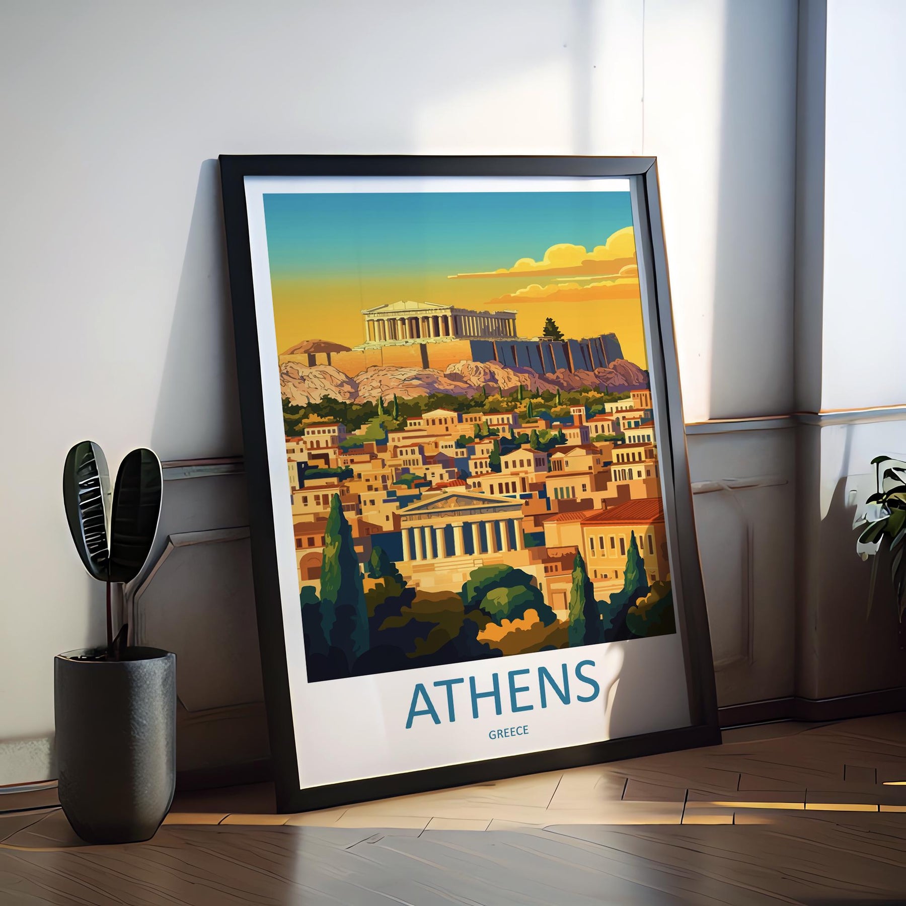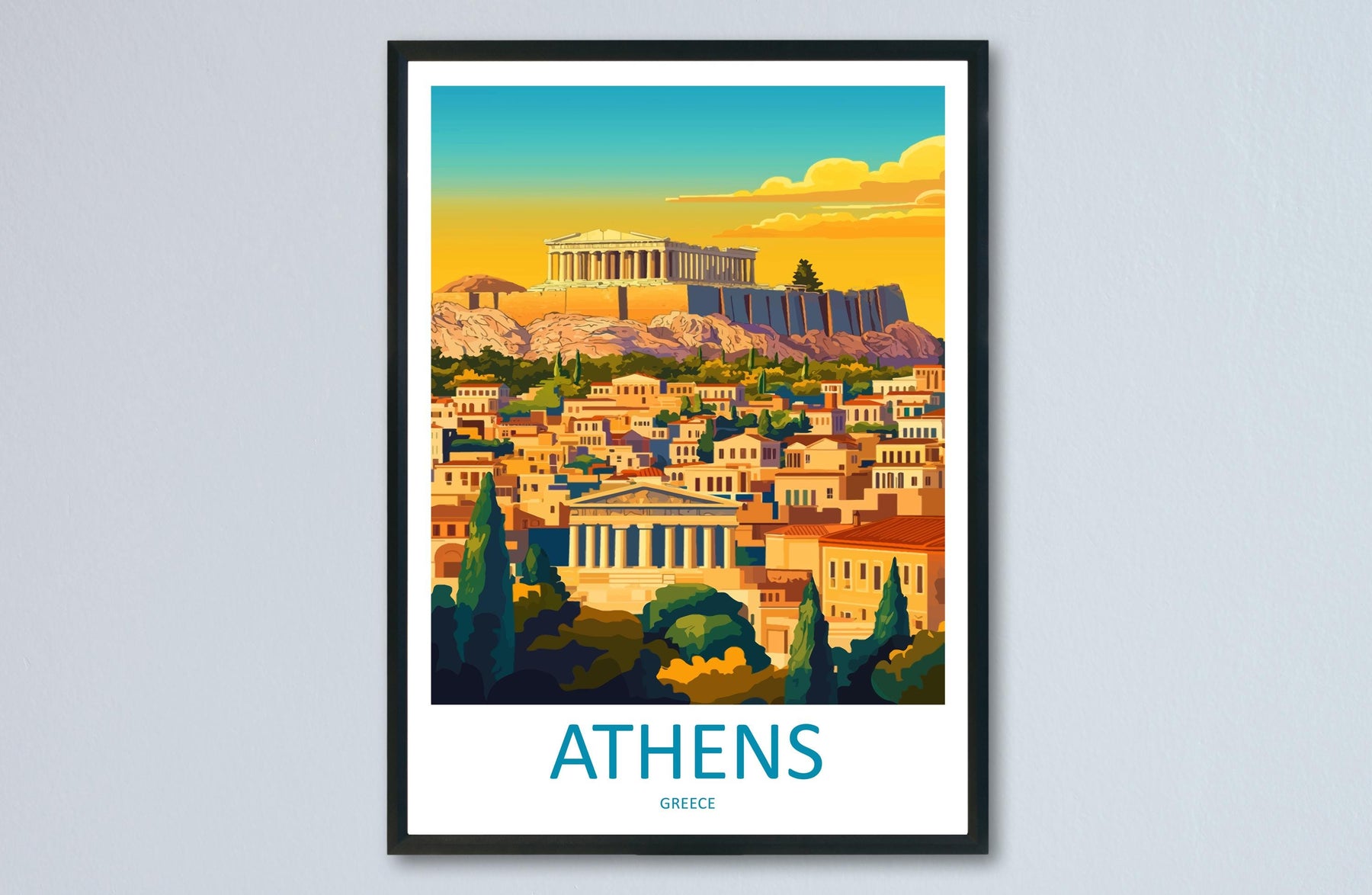 Athens Travel Poster Greece Wall Art Acropolis Cityscape Print Urban Decor Greece Gift Souvenir Scene Europe Ancient Landmark Art