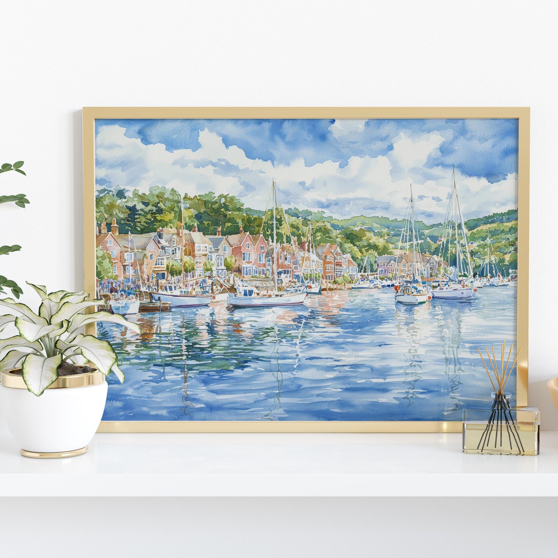 Dartmouth Devon Watercolor Poster Dartmouth Travel Print Harbour Town Painting Coastal Wall Art South West England Souvenir