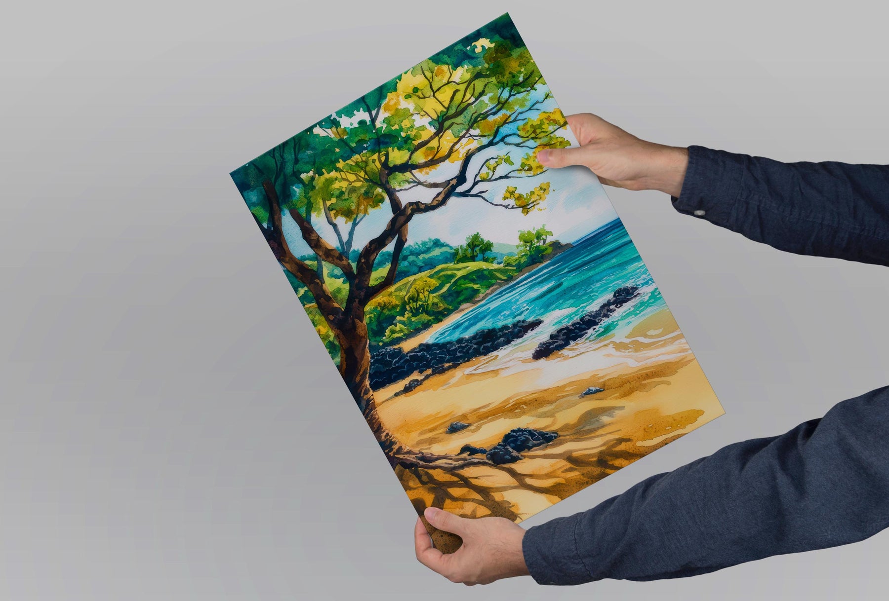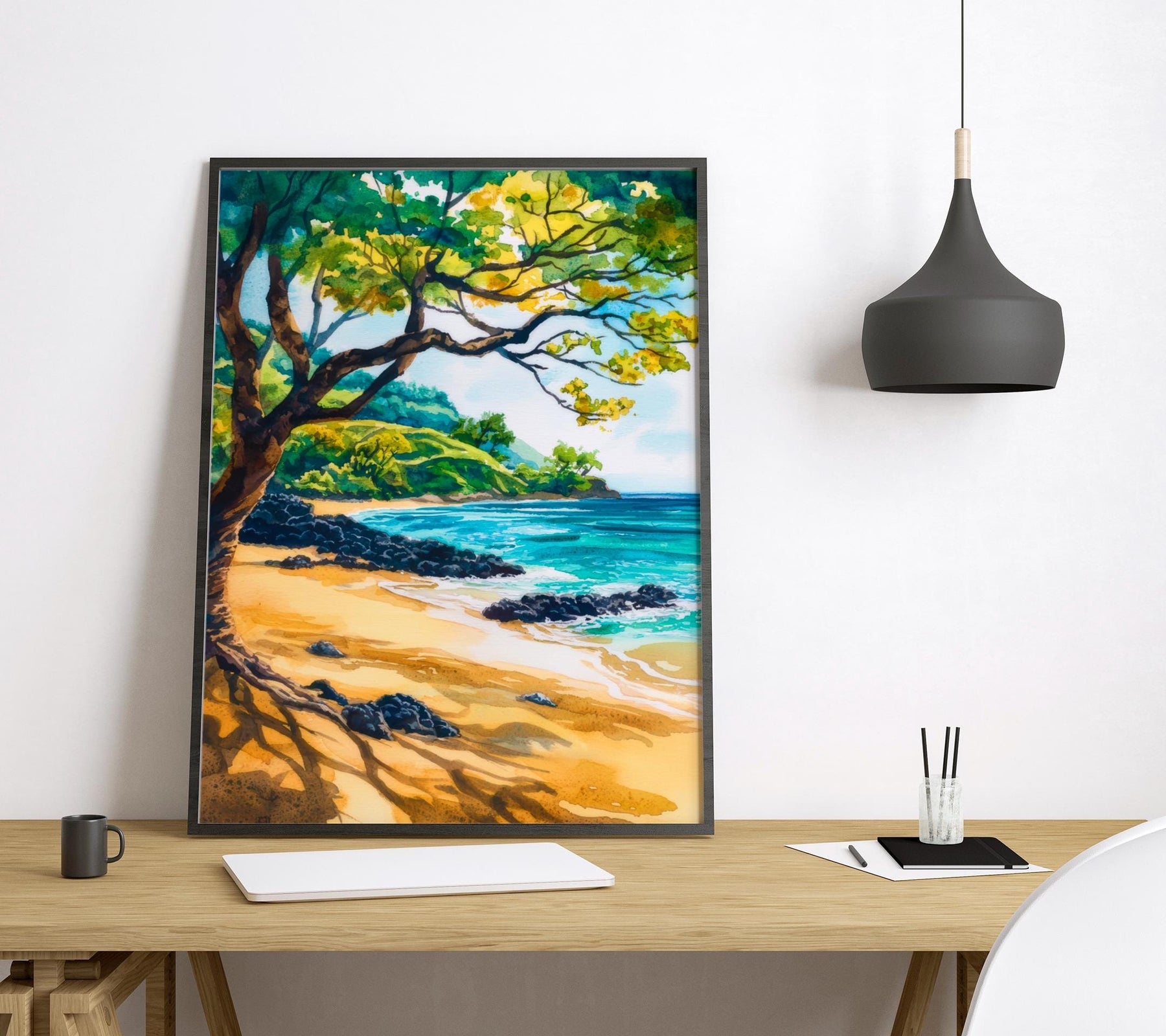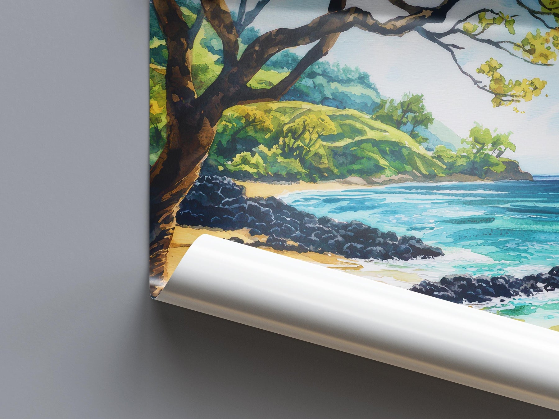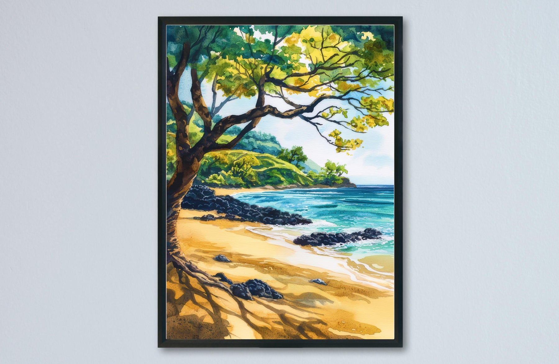 Hulopoe Valley Watercolor Poster Wall Art Hulopoe Valley Wall Hanging Home Décor Hulopoe Valley Gift Art Lovers United States Wall Art