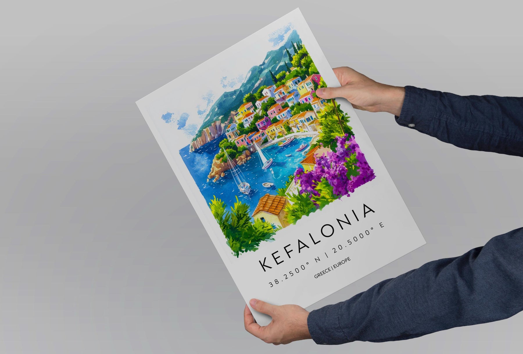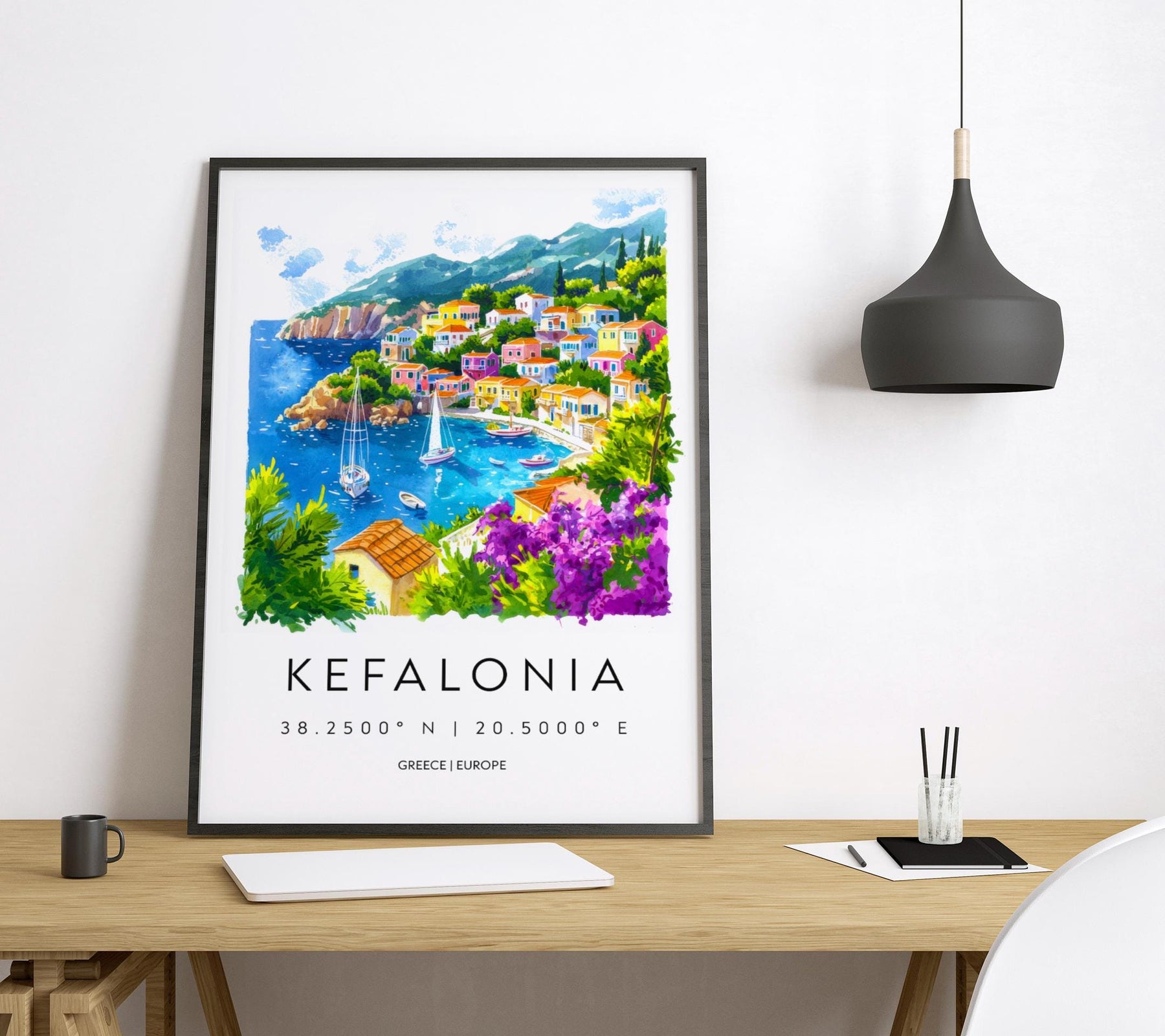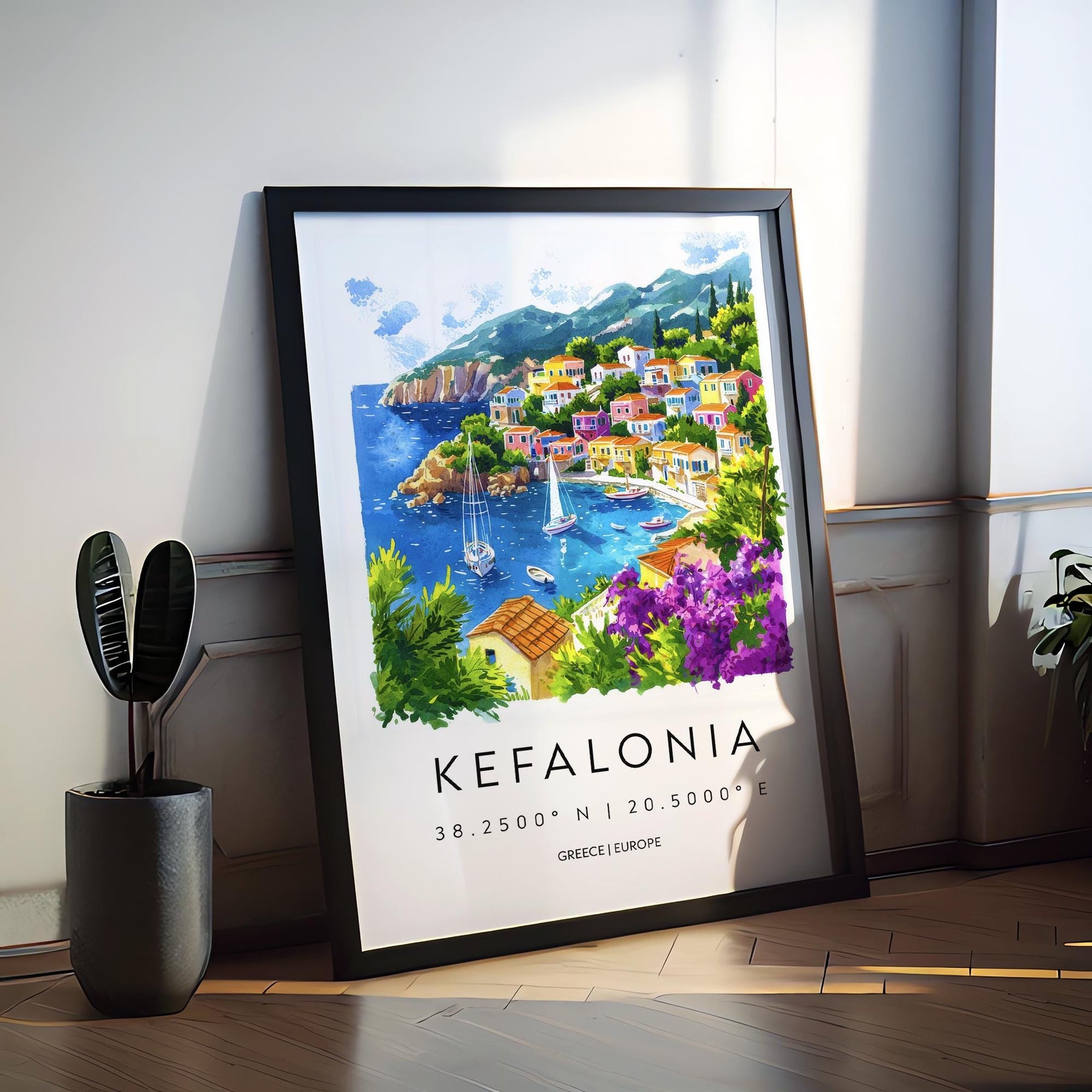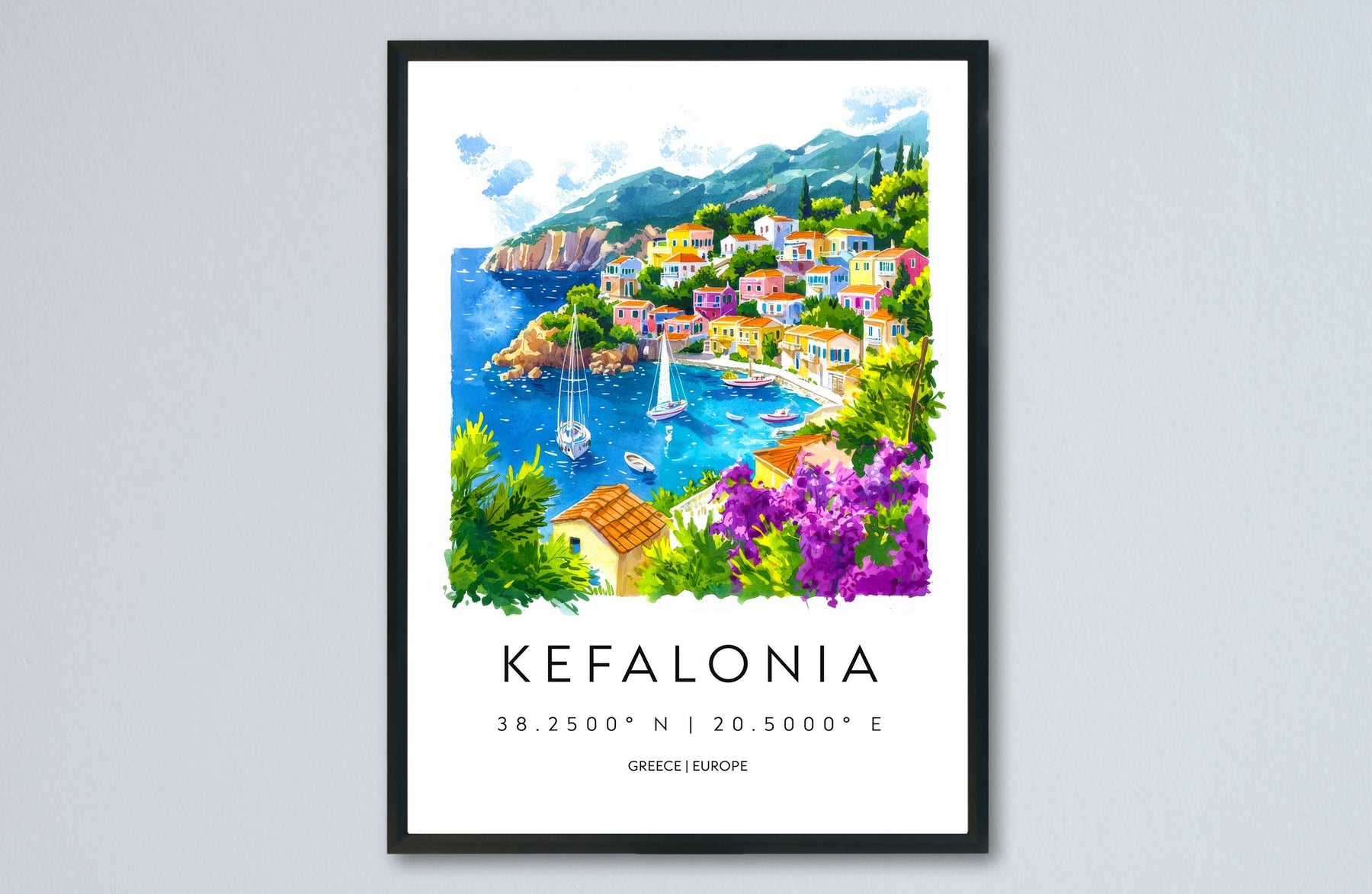 Kefalonia Watercolor Poster Wall Art Kefalonia Wall Hanging Home Décor Kefalonia Gift Art Lovers Greece Wall Art