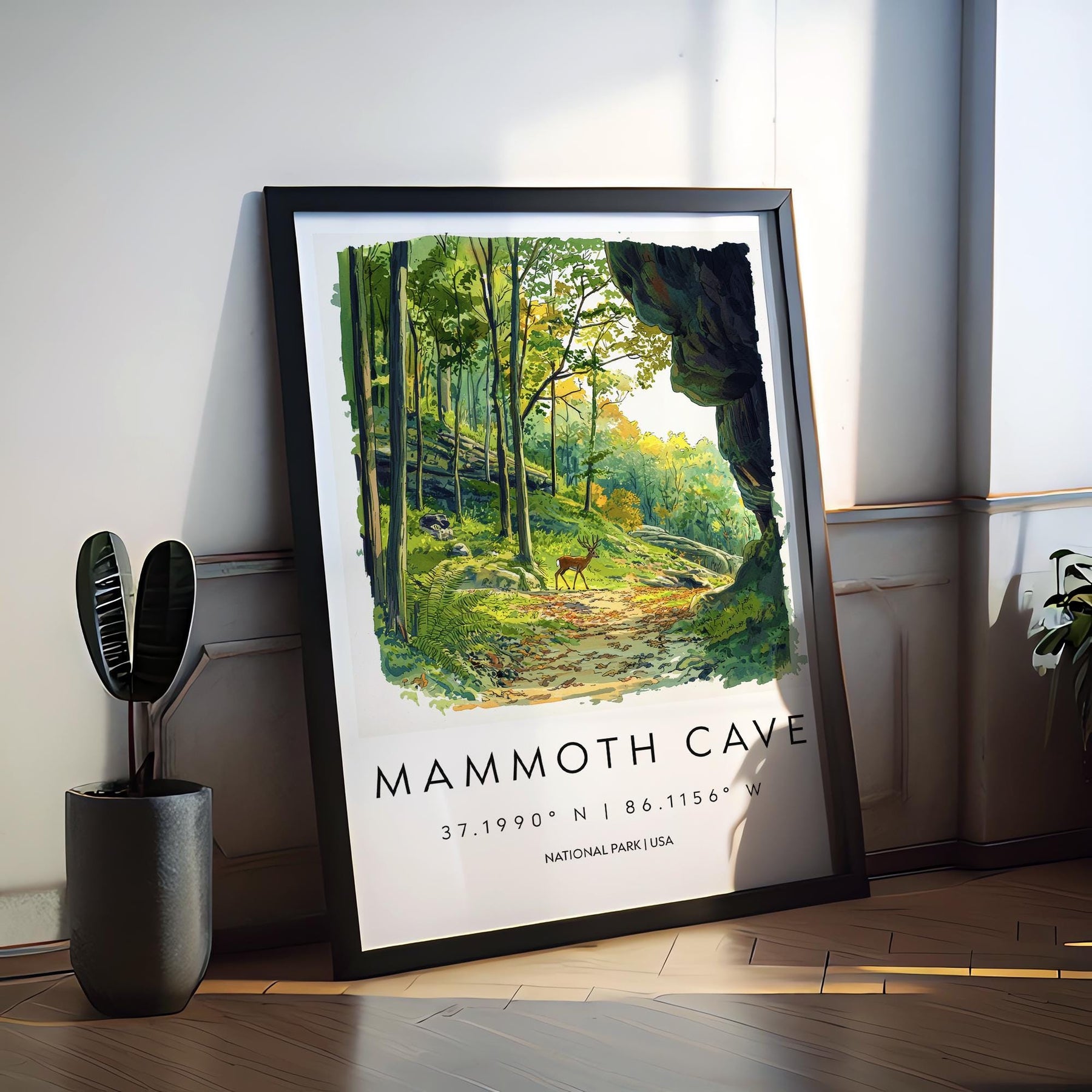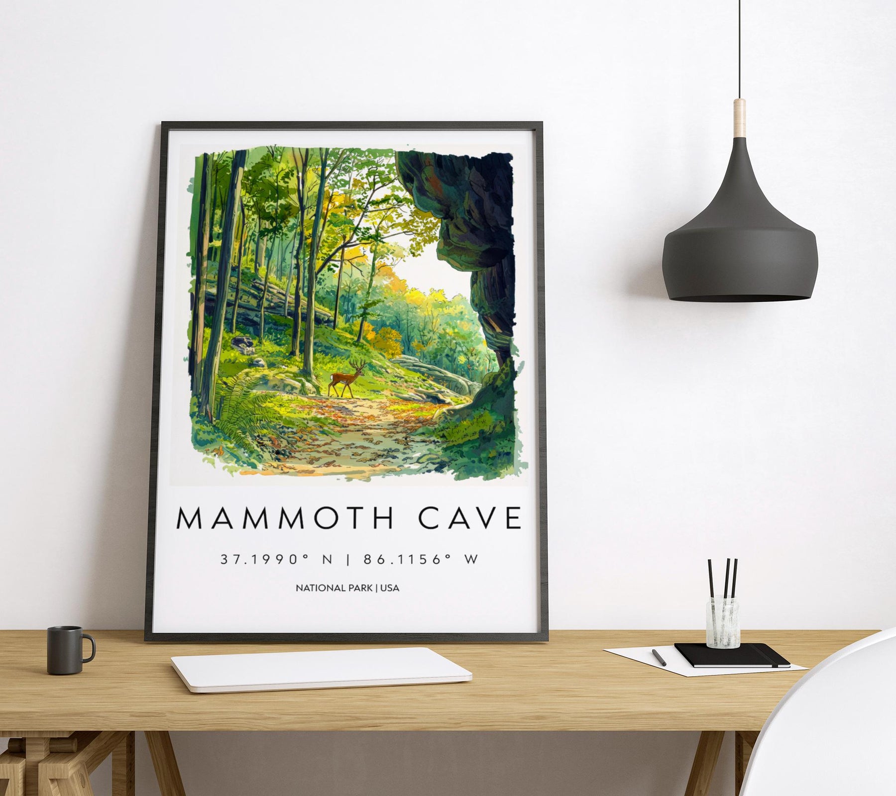 Mammoth Cave Watercolor Poster Mammoth Cave Travel Print Kentucky Wall Art National Park Decor Cave Landscape Subterranean Scene Print