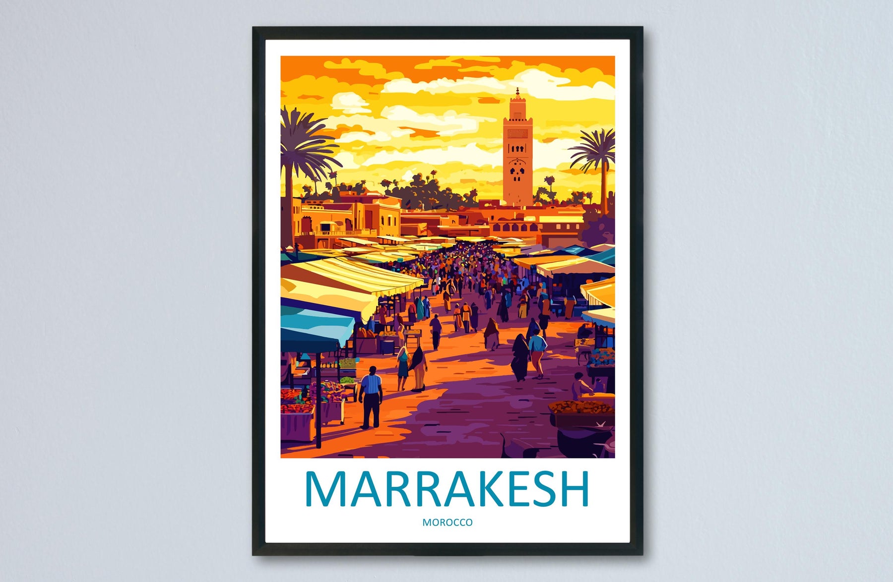 Marrakesh Travel Poster Morocco Wall Art Medina Print City View Illustration North Africa Decor Marrakesh Gift Souvenir Scene
