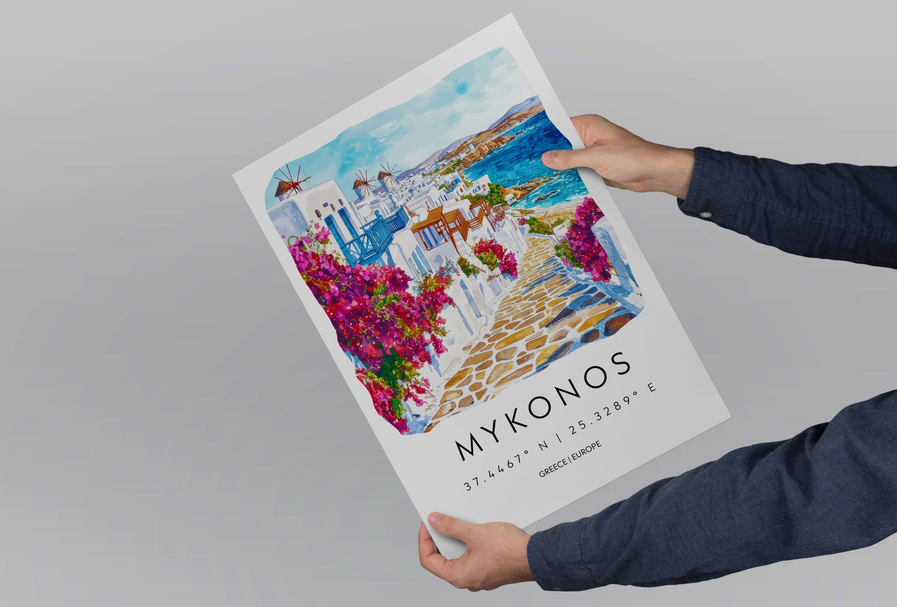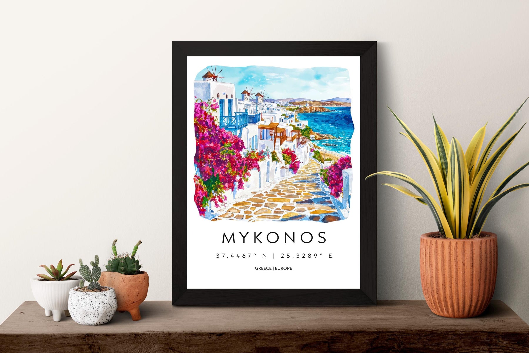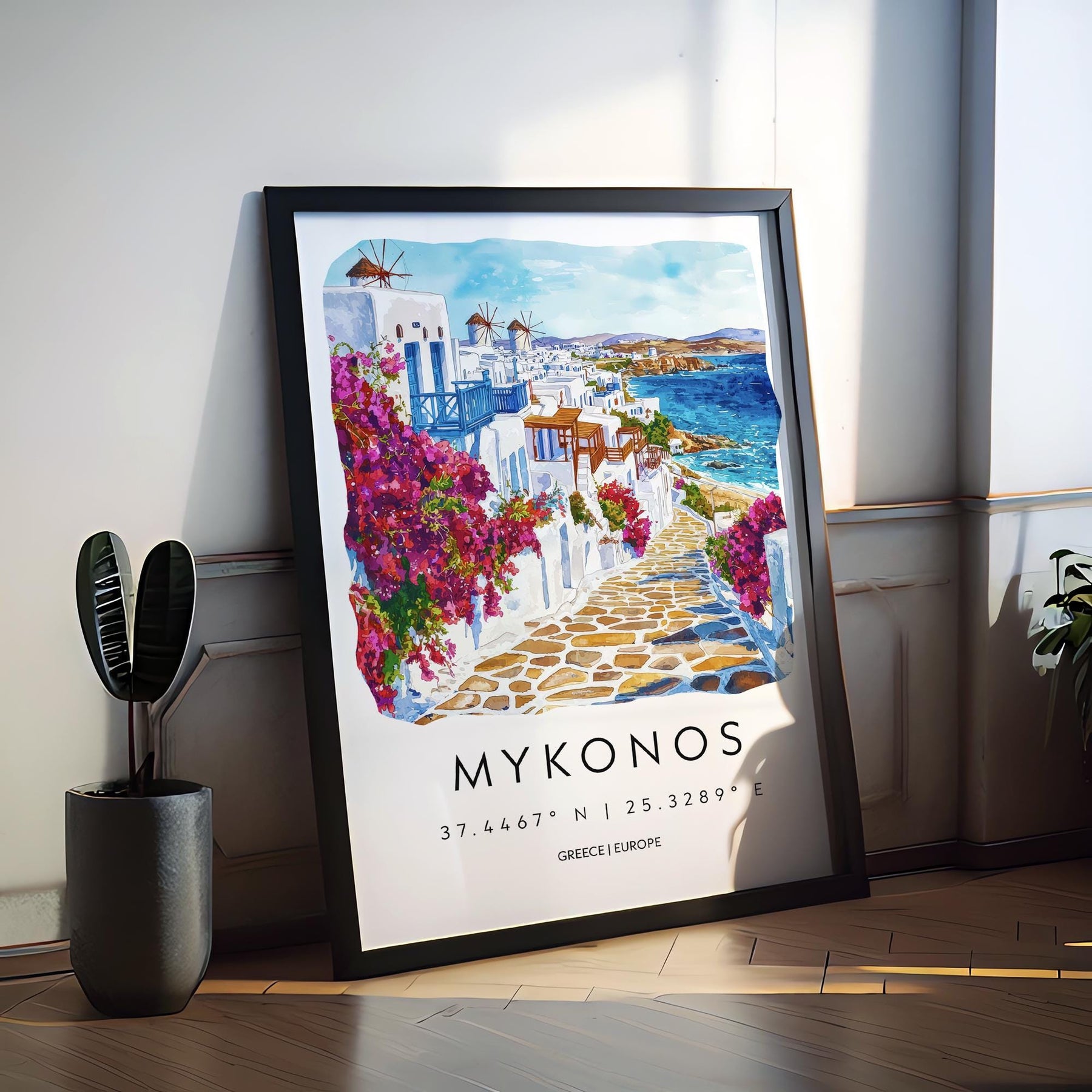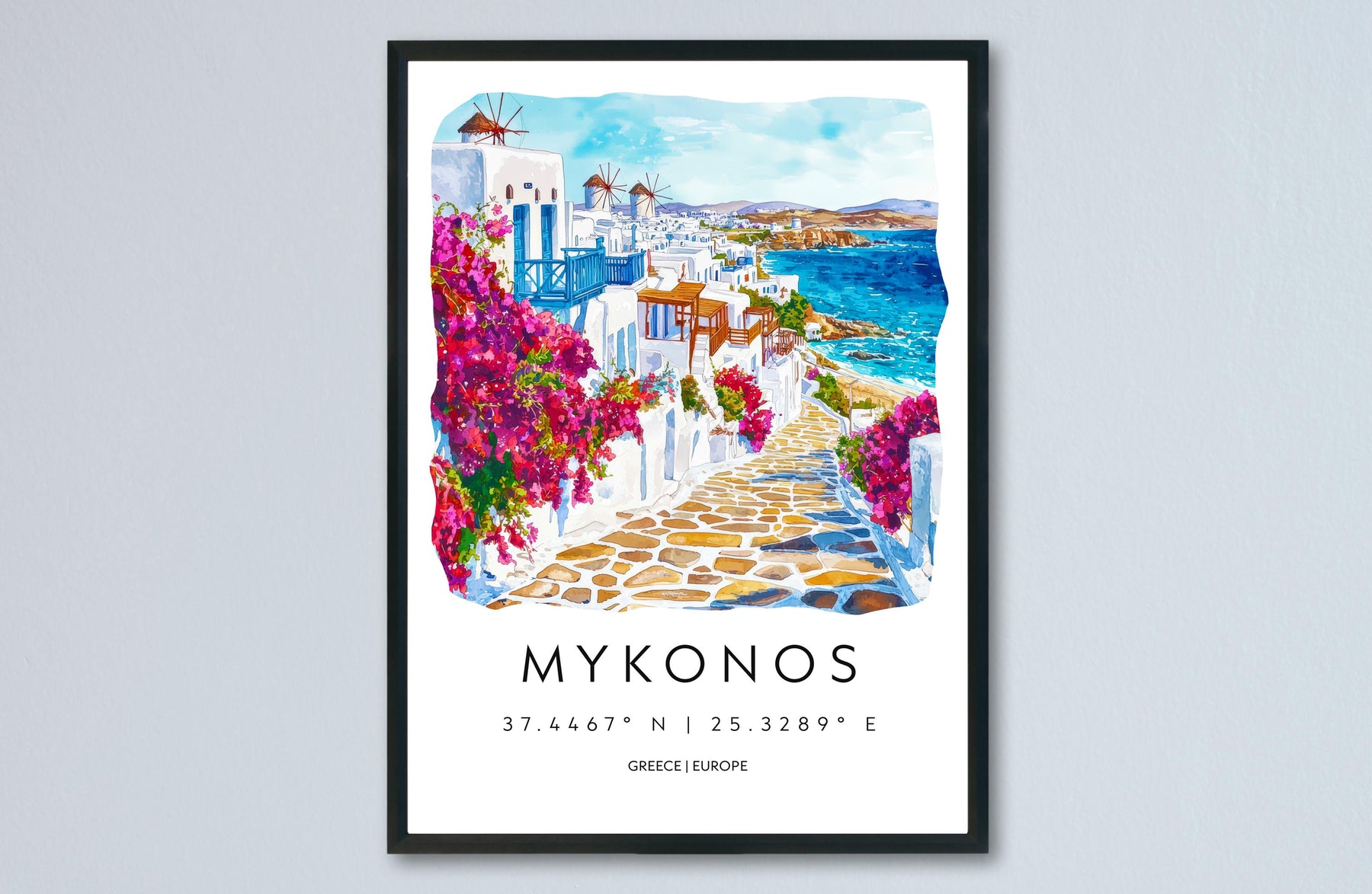 Mykonos Watercolor Poster Wall Art Mykonos Wall Hanging Home Décor Mykonos Gift Art Lovers Greece Wall Art