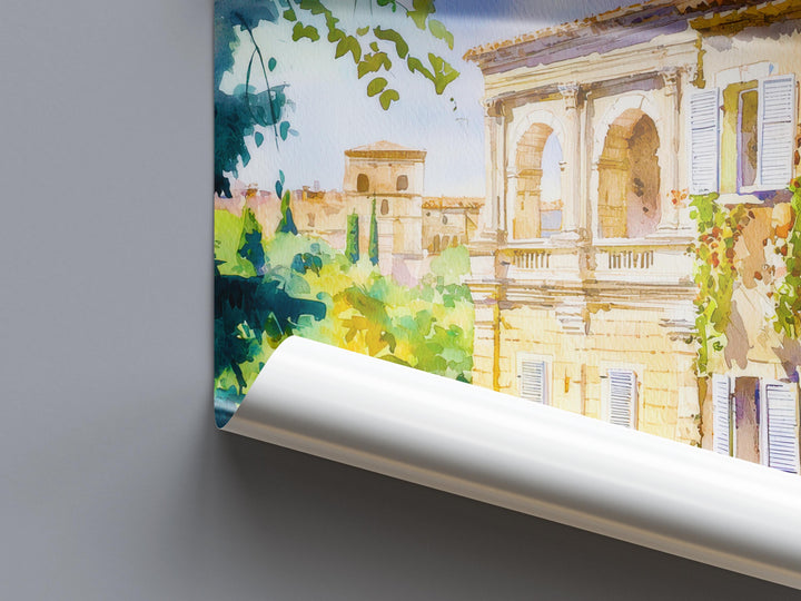 Nimes Watercolor Poster Nimes Travel Print France Wall Art Nimes Decor Roman Arena Scene Historic City Landscape French Architecture Print