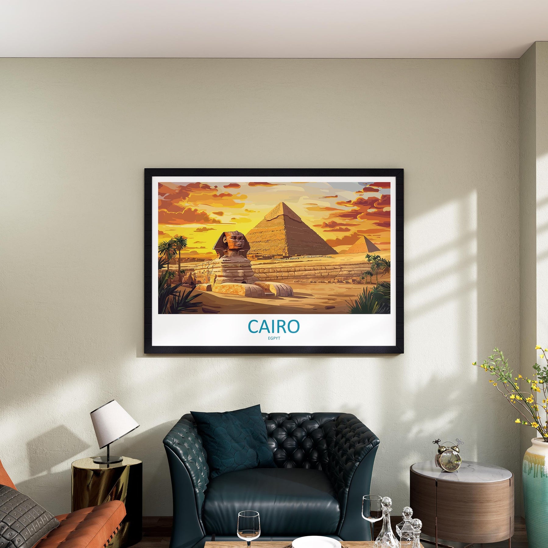 Pyramids of Giza Egypt Landscape Travel Poster Scenic Desert Monuments Wall Art Ancient Wonders Print Middle East Decor Giza Artwork