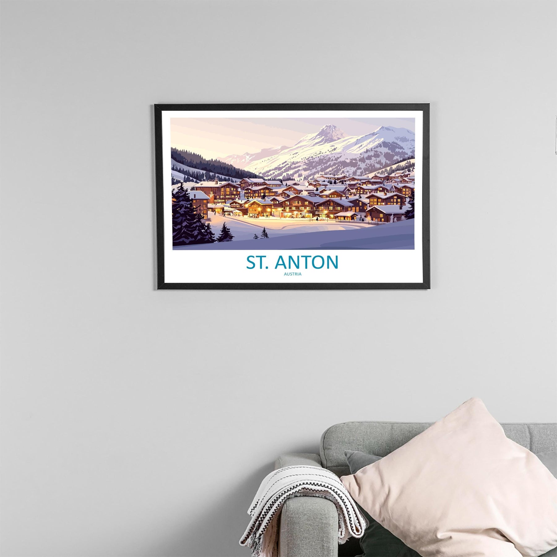 St Anton Austria Landscape Travel Poster Scenic Alpine Ski Resort Wall Art Snowy Mountains Print Europe Decor Beautiful St Anton Artwork