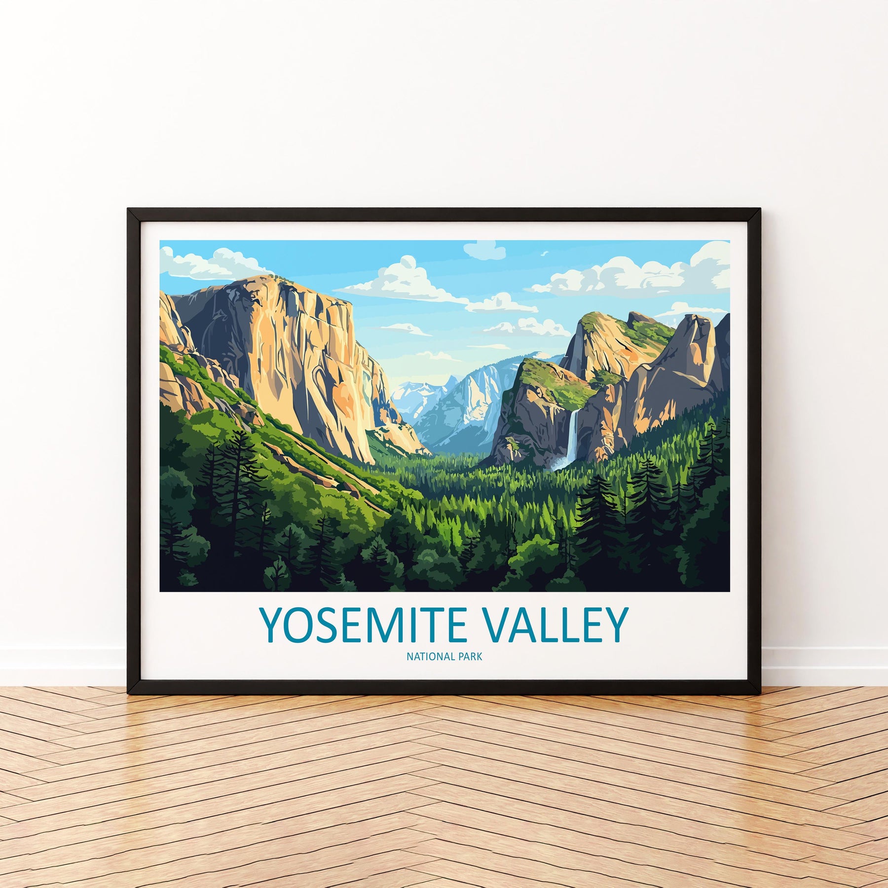 Yosemite Valley National Park Landscape Travel Poster Scenic Granite Cliffs Wall Art USA Nature Print California Decor Yosemite Artwork