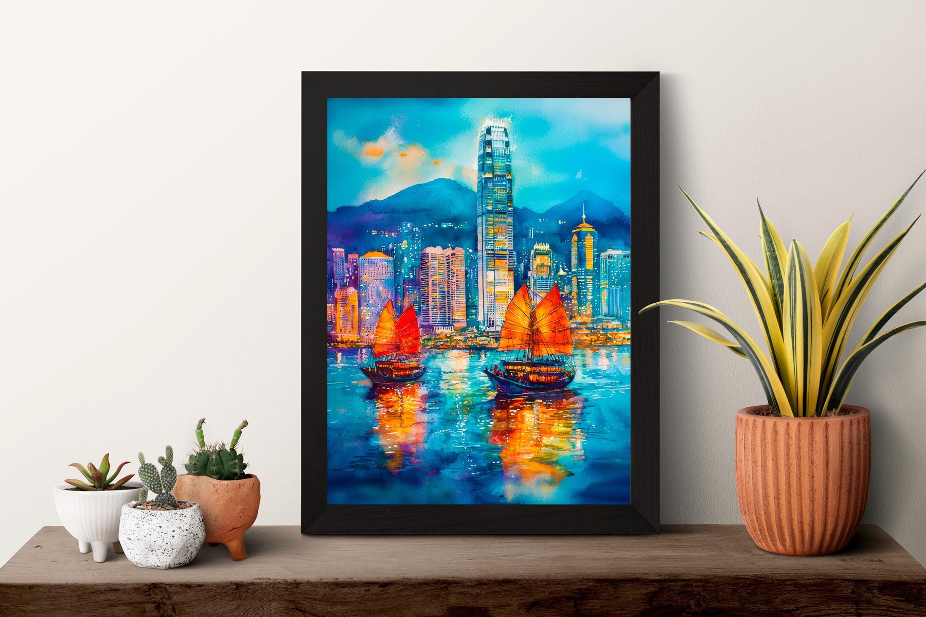 Hong Kong Watercolor Poster Hong Kong Travel Print City Skyline Painting Asia Wall Art Urban Decor Modern Landscape Souvenir