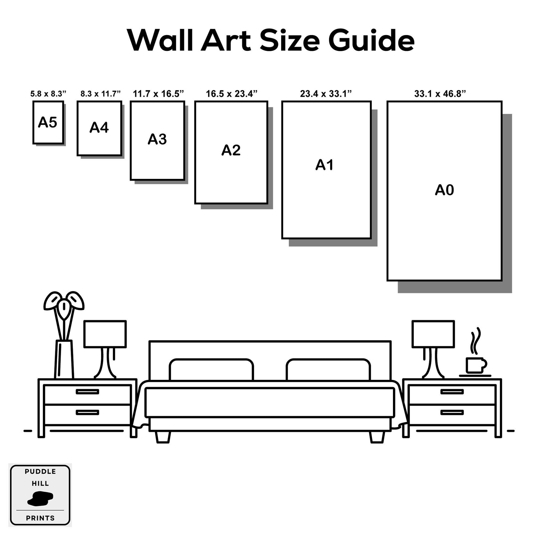 We offer sizes 5x7" - 30 x 40" Whether it's for a small space or a large wall, these sizes are perfect to match any room and style.
