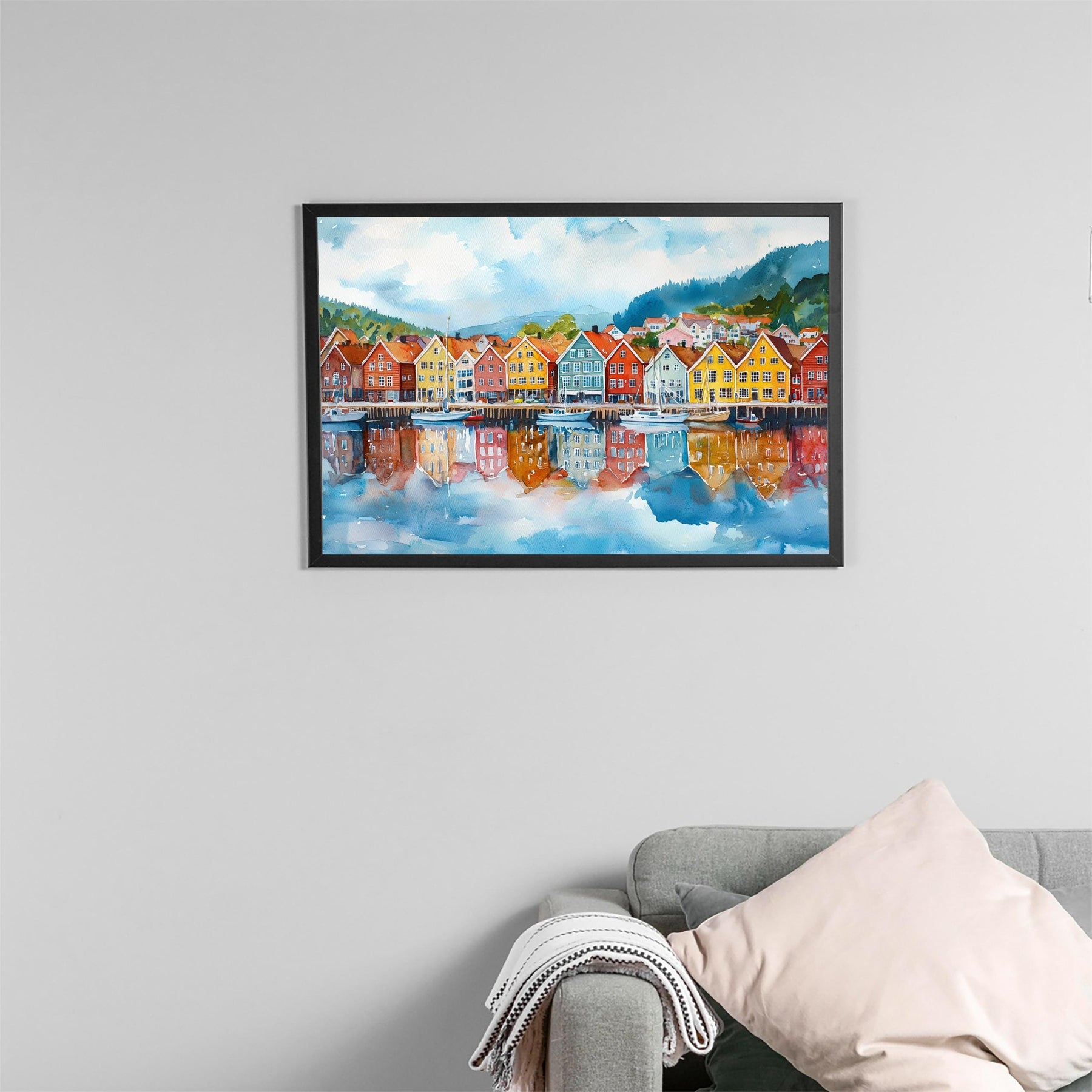 Bergen watercolor poster Wall Art Bergen Wall Hanging Home Décor Bergen Gift Art Lovers Norway Wall Art