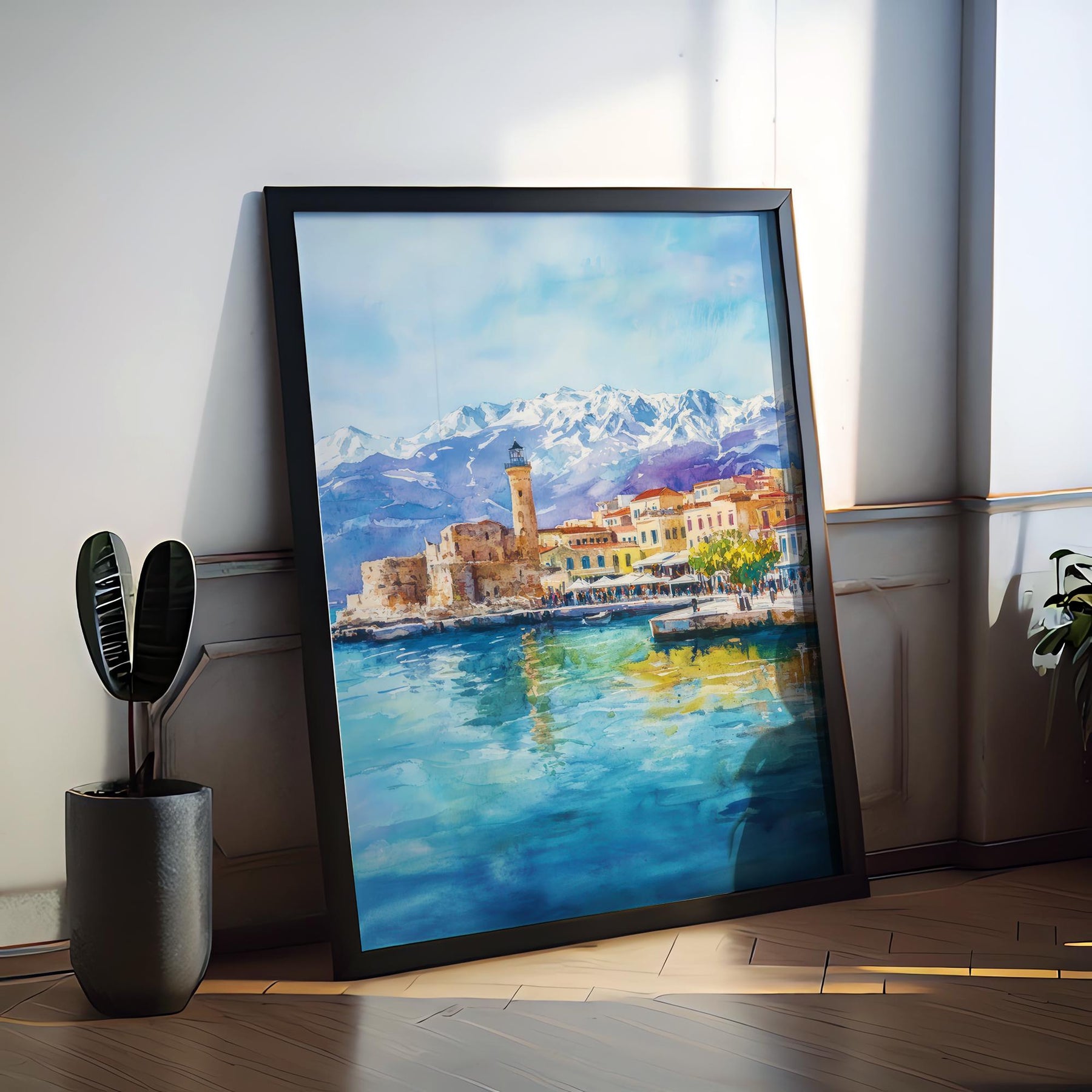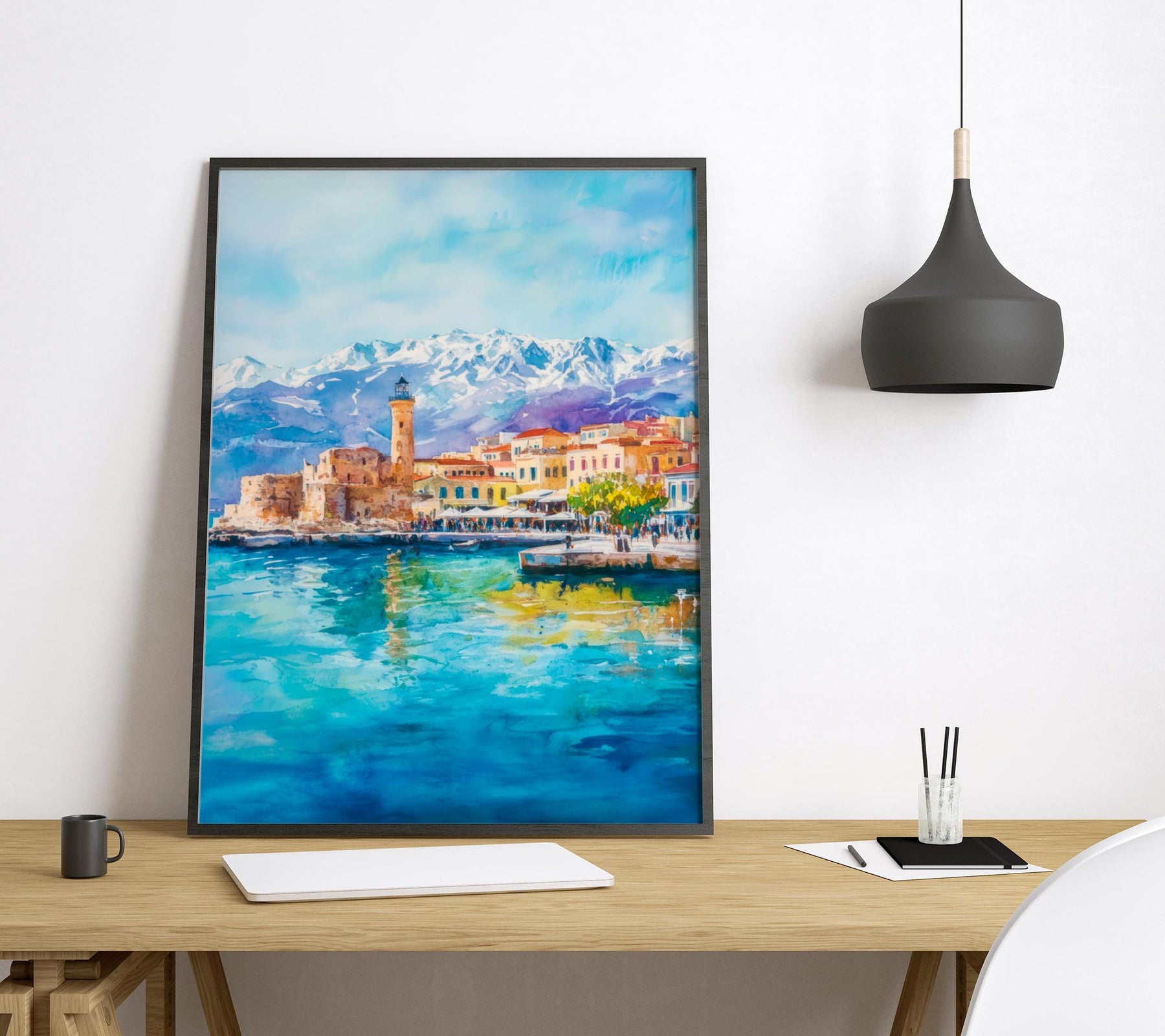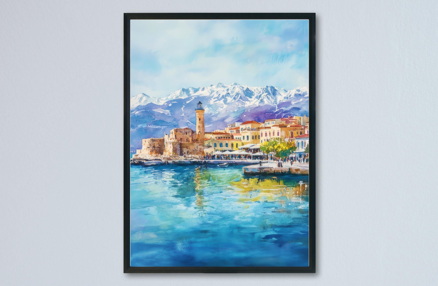 Chania Watercolor Poster Greece Travel Print Wall Art Home Decor Gift Greek City Souvenir Venetian Harbor Lighthouse Wall Decor Hanging