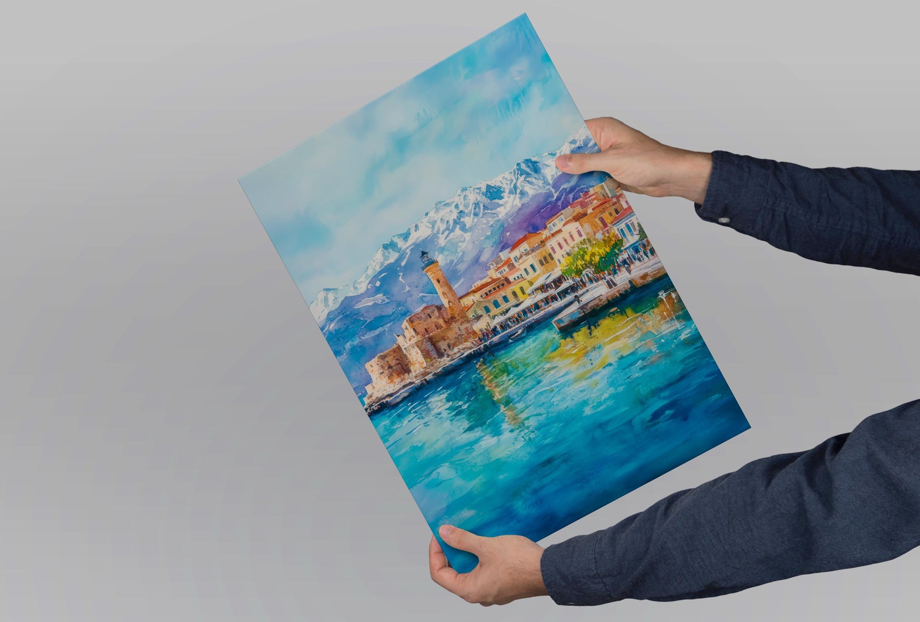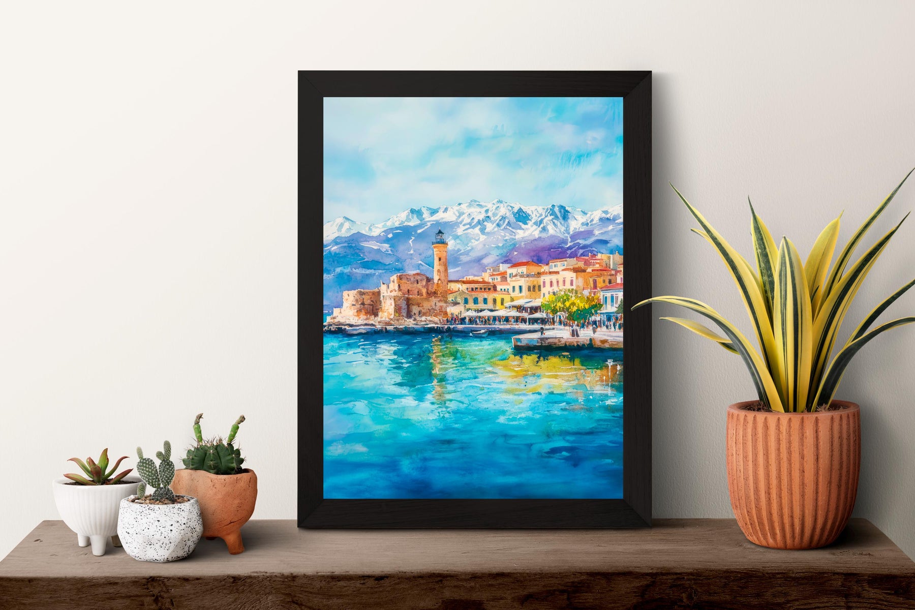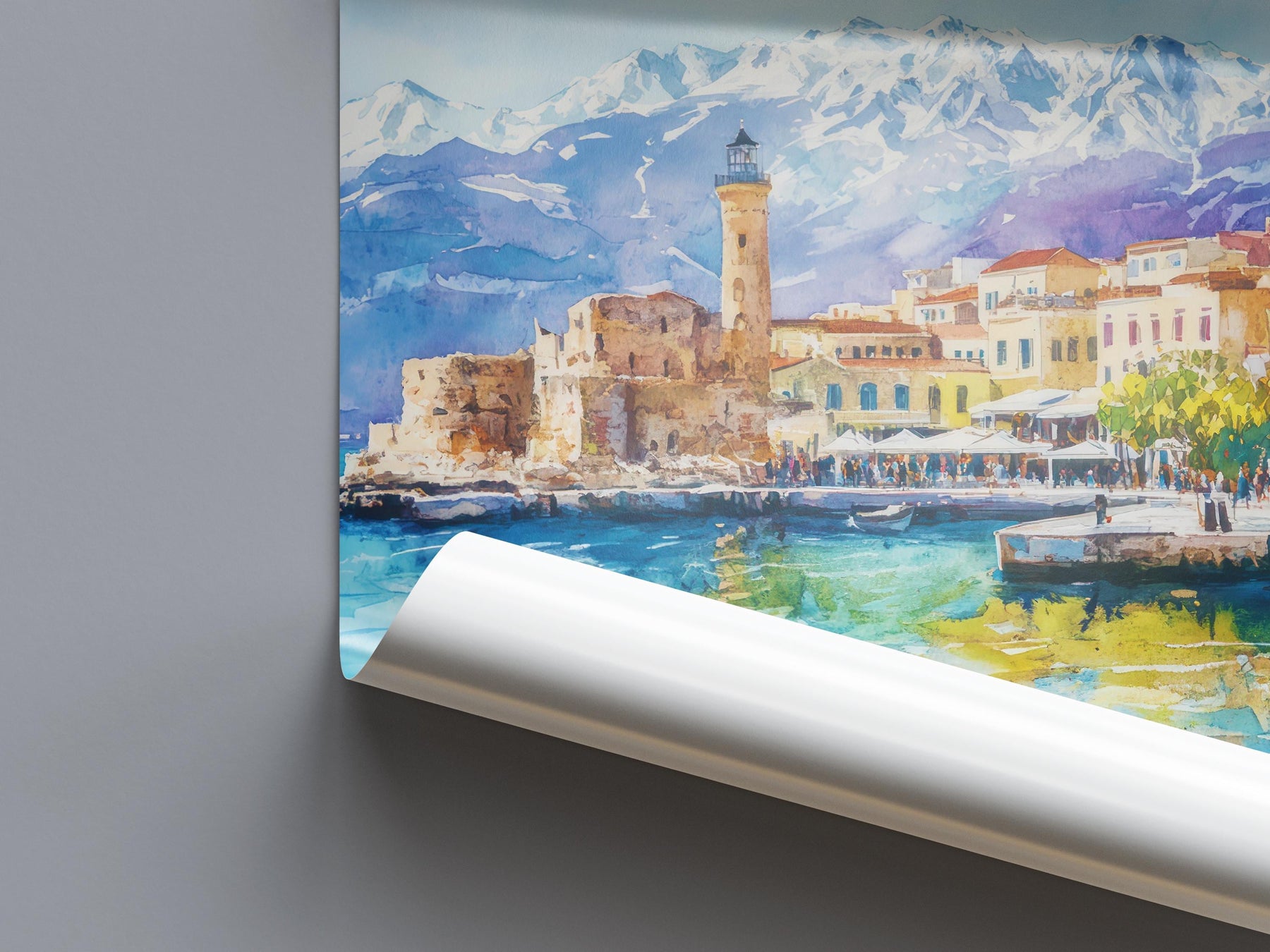 Chania Watercolor Poster Greece Travel Print Wall Art Home Decor Gift Greek City Souvenir Venetian Harbor Lighthouse Wall Decor Hanging
