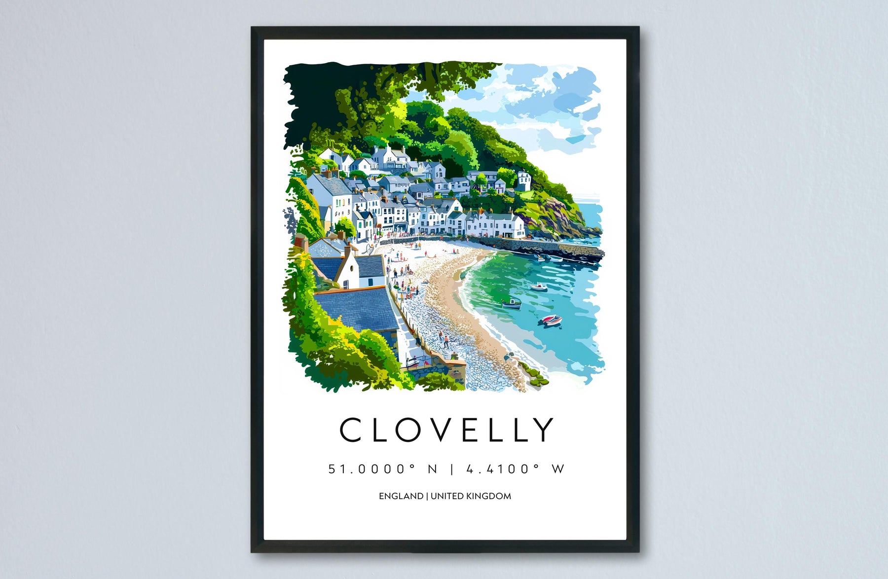 Clovelly Watercolor Poster Clovelly Devon Travel Print Wall Art Clovelly Home Decor Clovelly Gift Art Lovers UK Historic Village