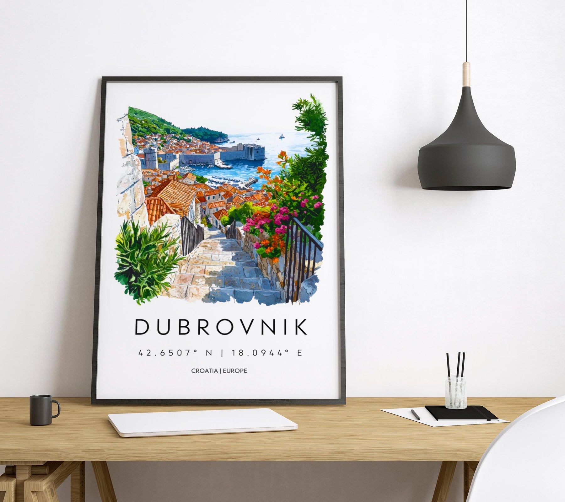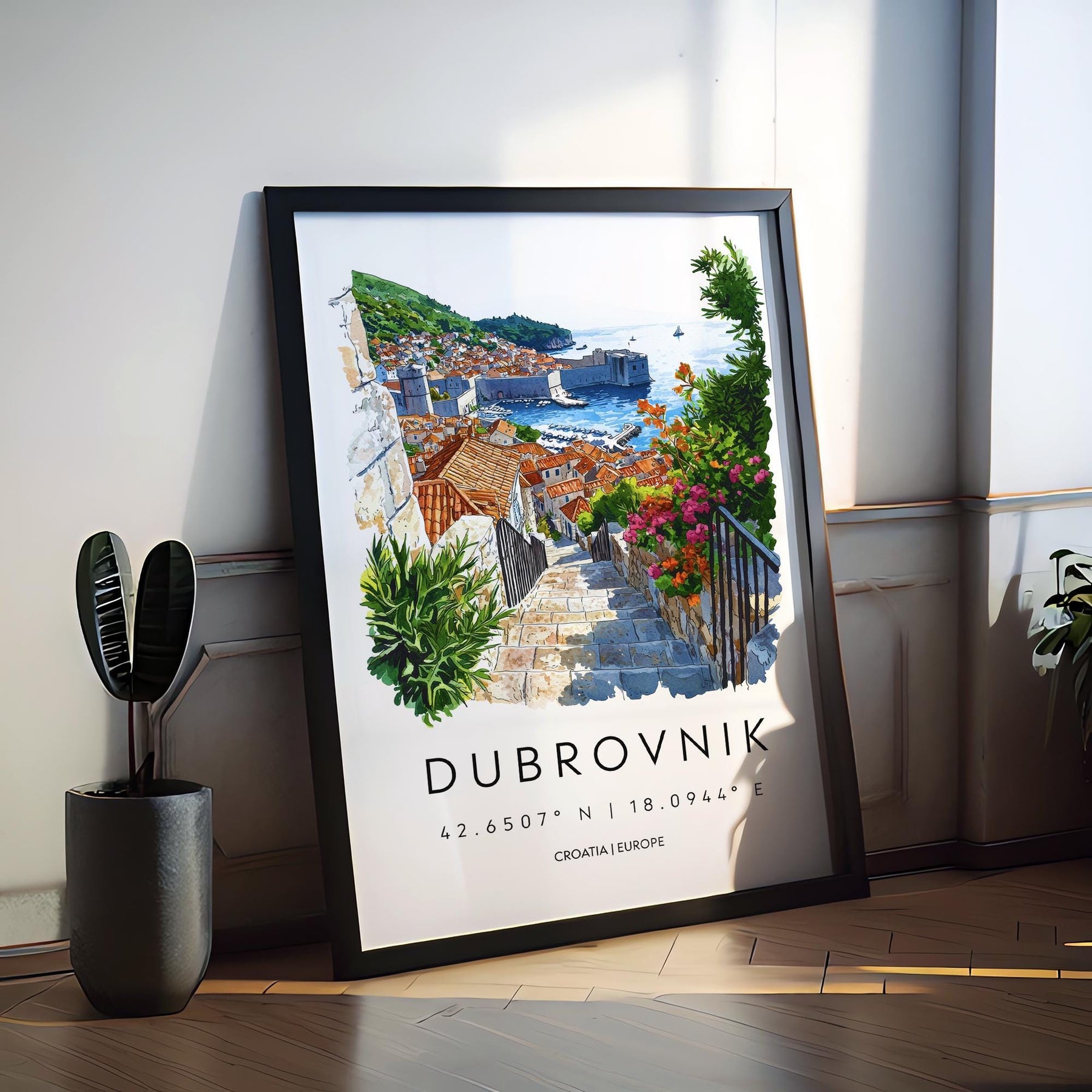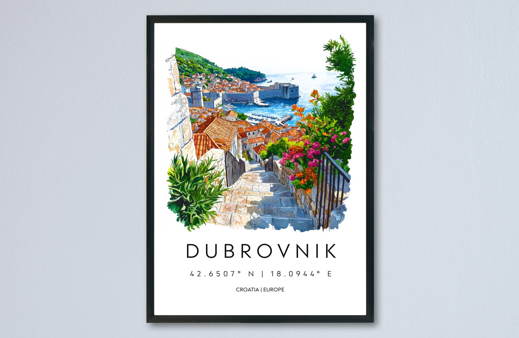 Dubrovnik Watercolor Poster Dubrovnik Travel Print Dubrovnik Wall Art Dubrovnik Painting Croatia Souvenir Coastal Decor