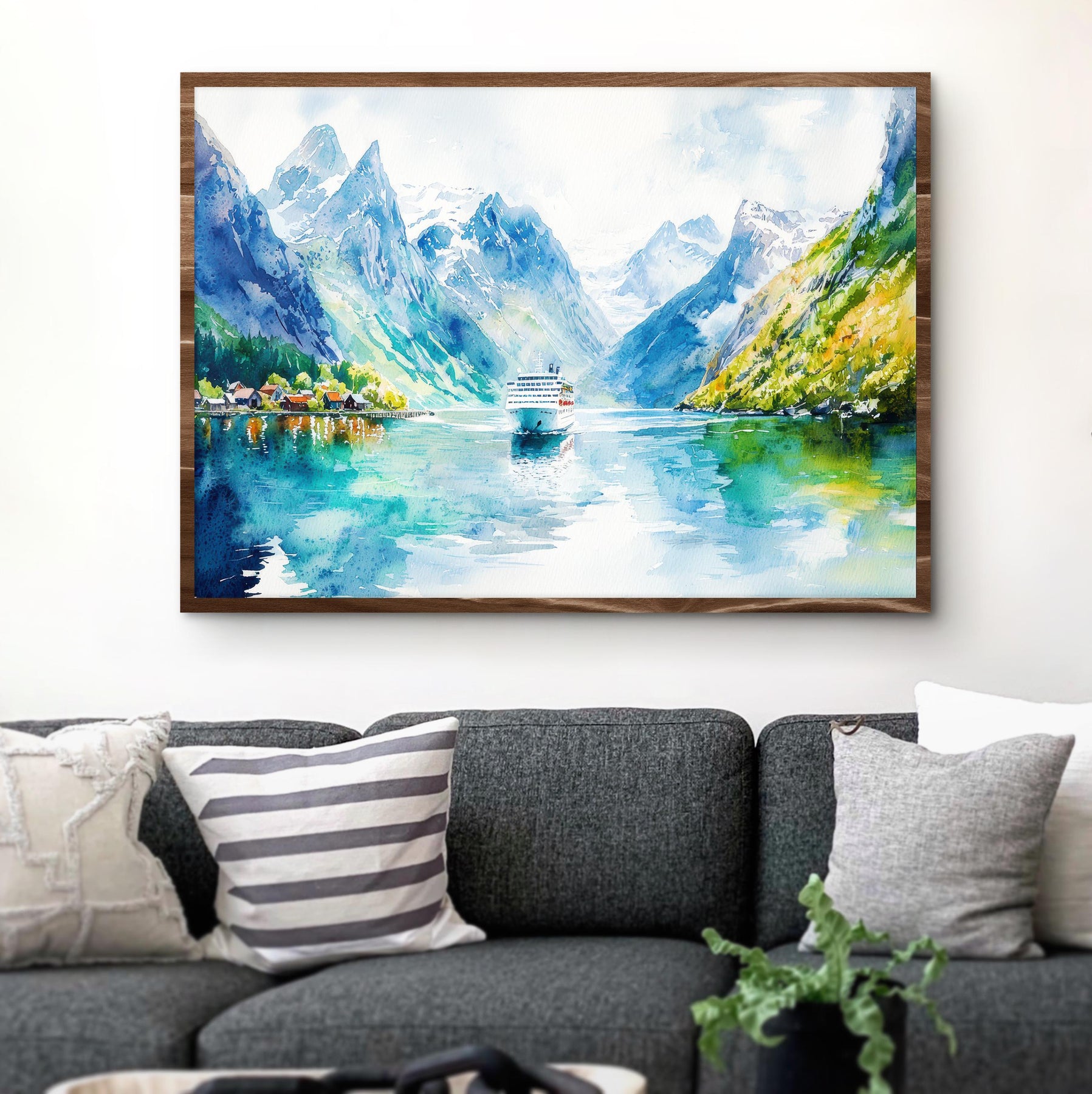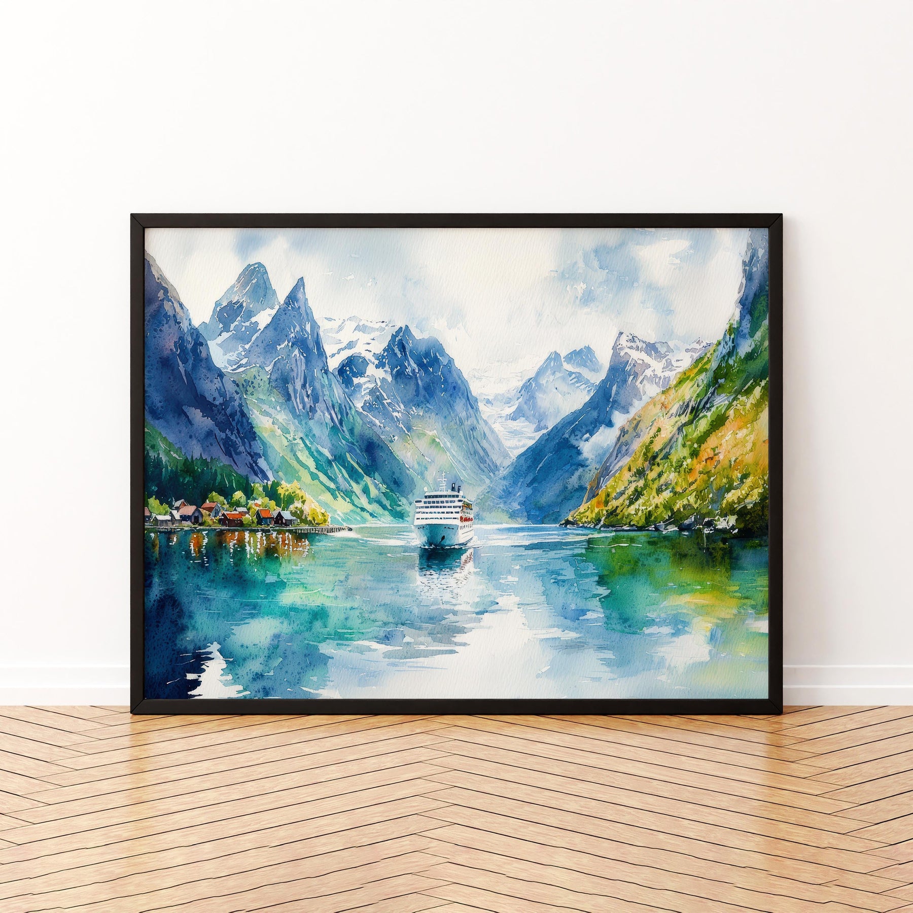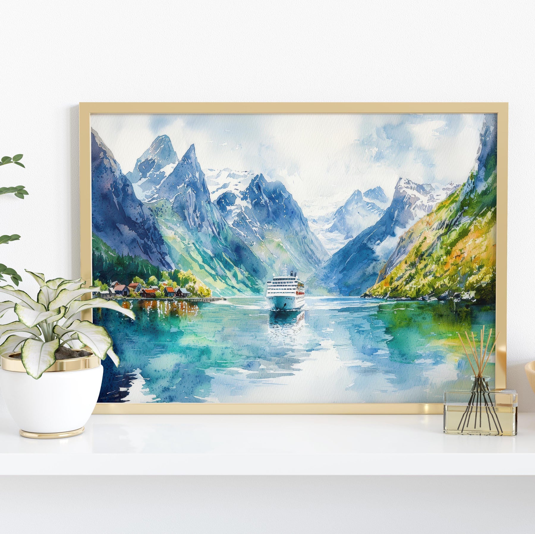 Fjords Watercolor Poster Landscape Wall Art Fjords Wall Hanging Home Décor Fjords Gift Art Lovers Norway Wall Art