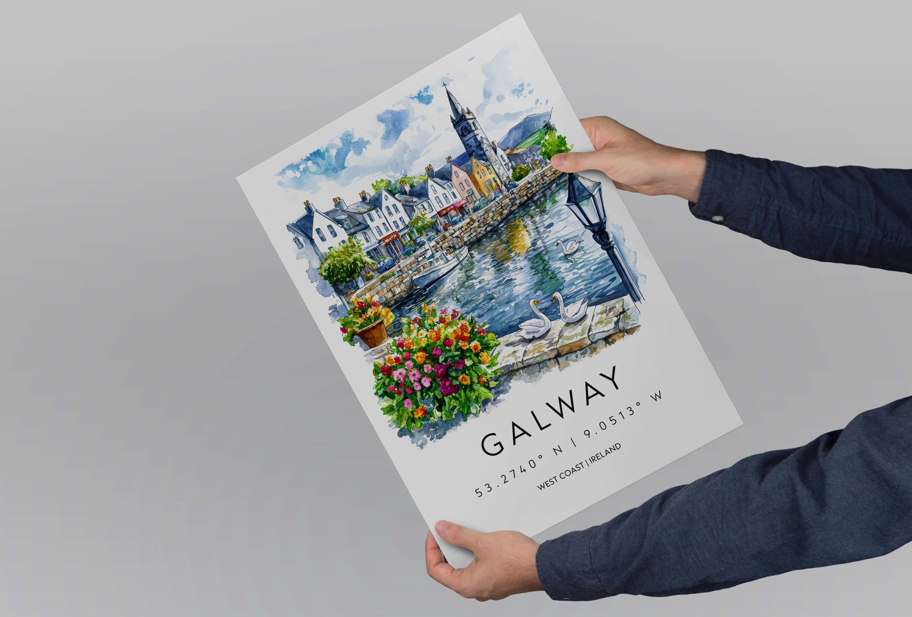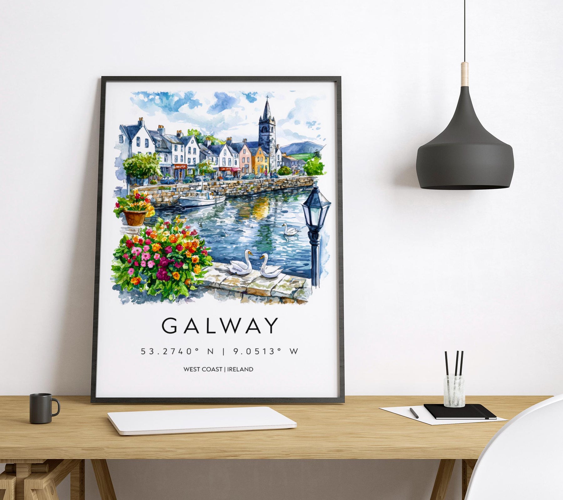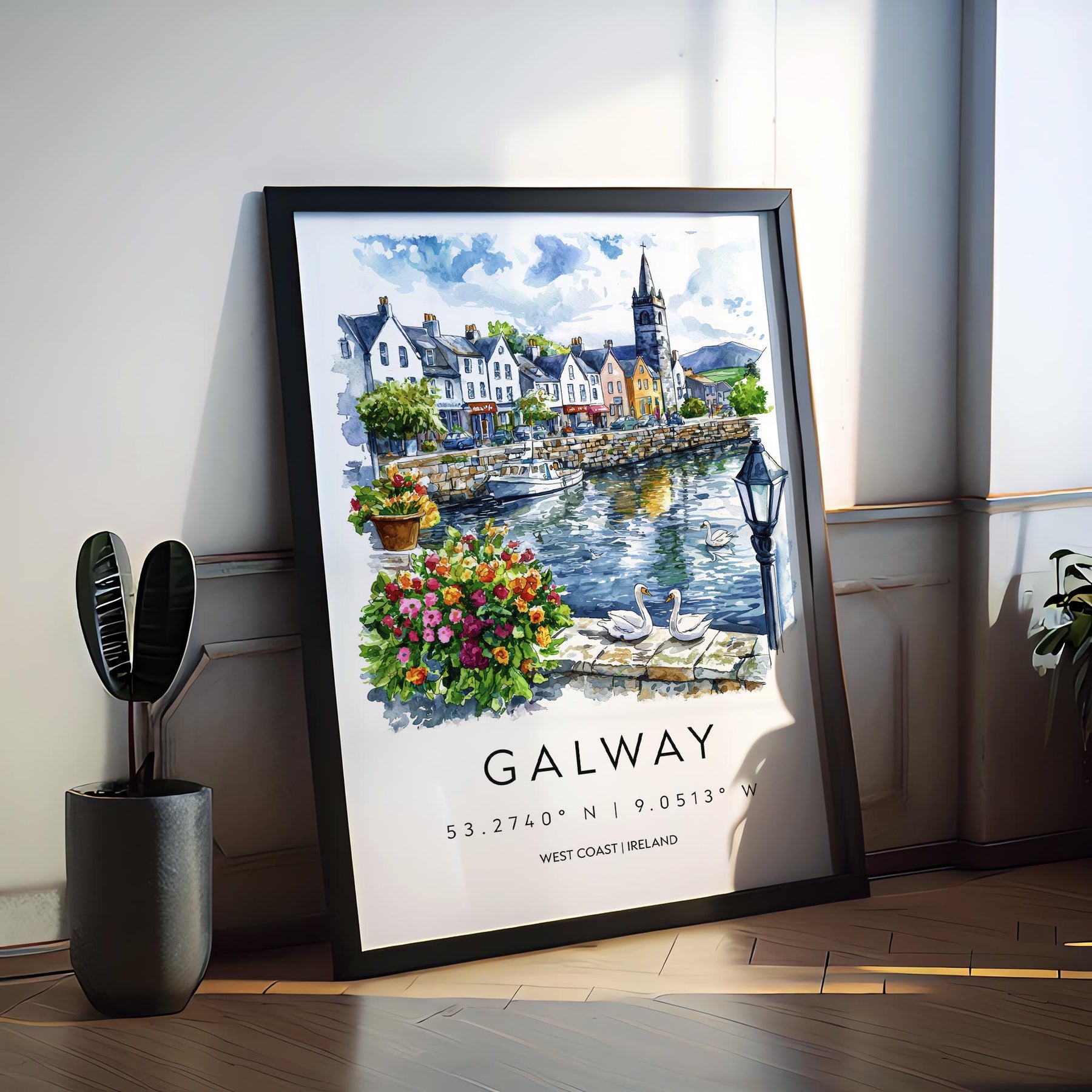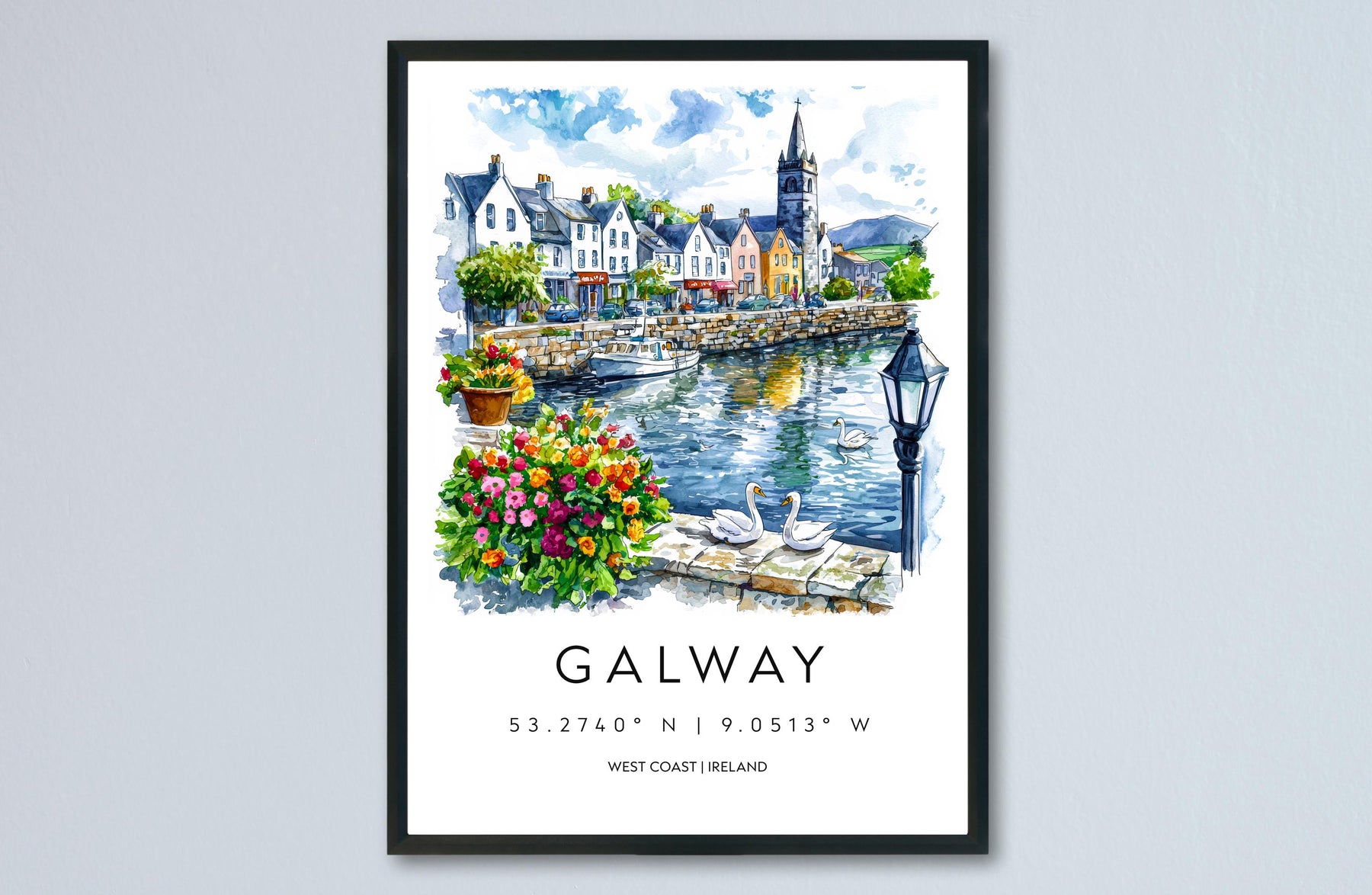 Galway Watercolor Poster Galway Travel Print Galway Wall Art Galway Cityscape Painting Galway Souvenir Ireland Decor