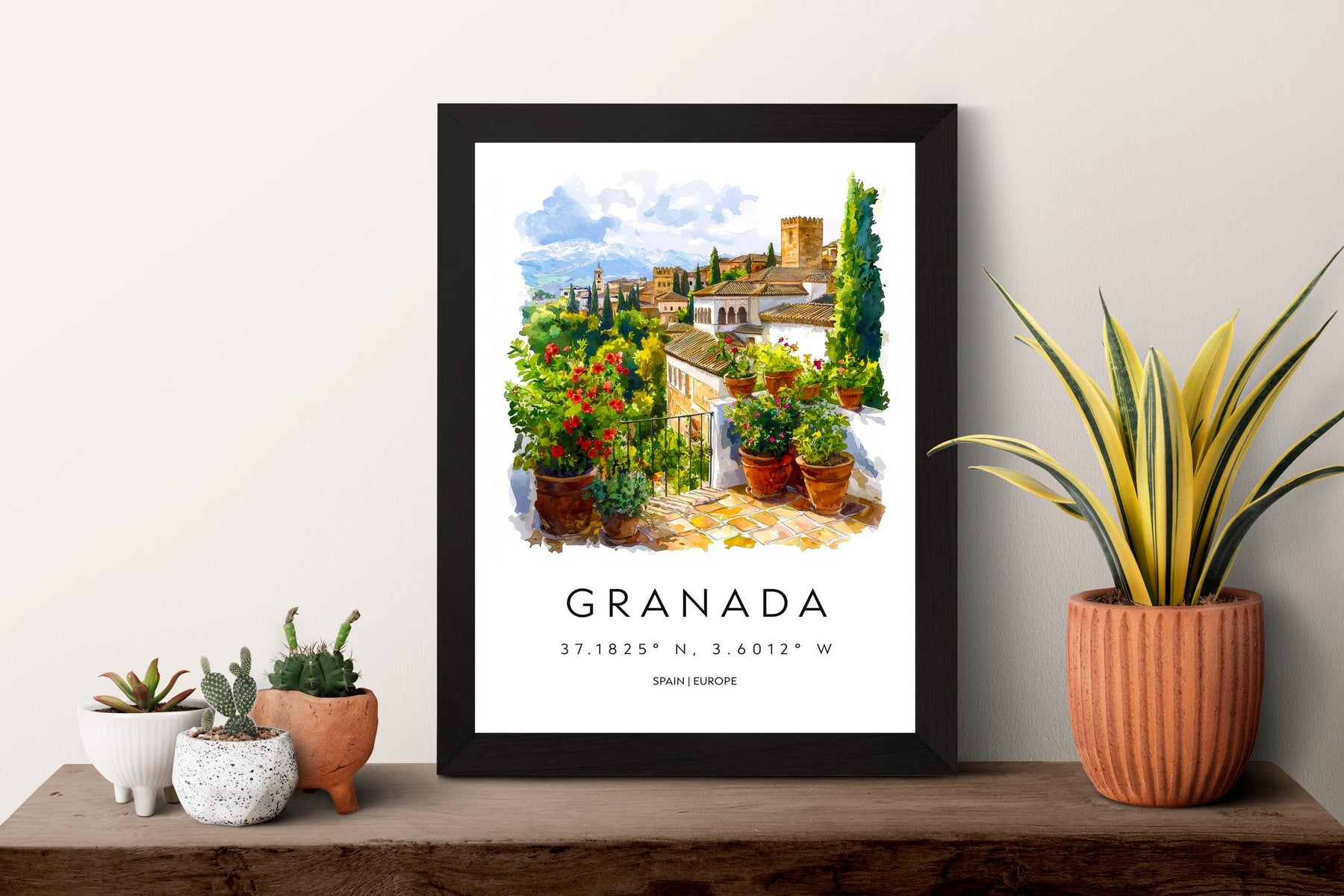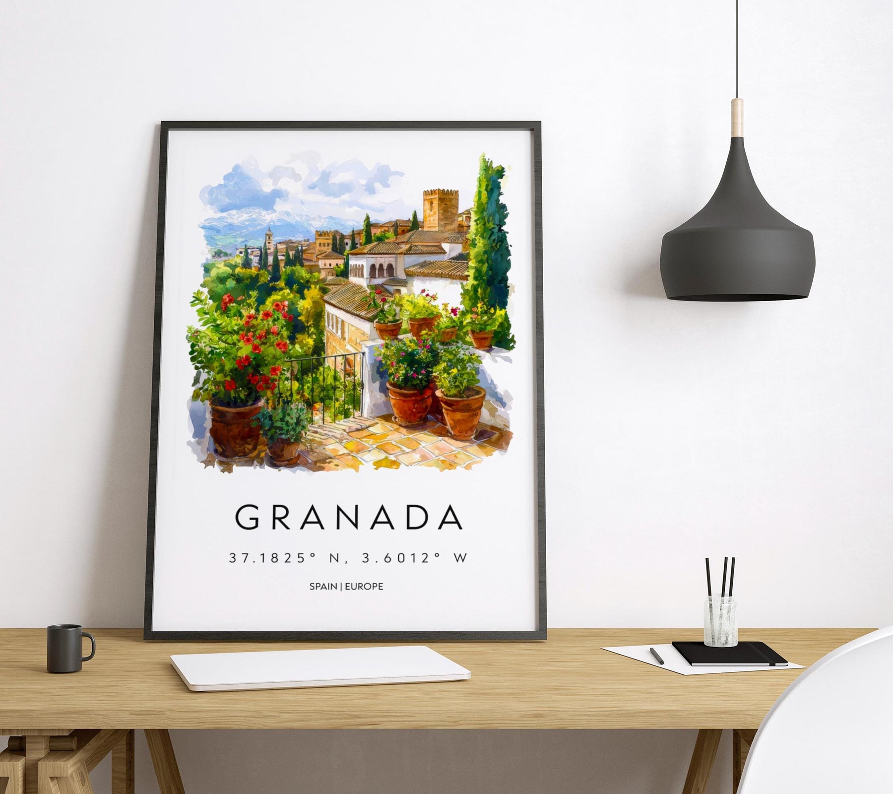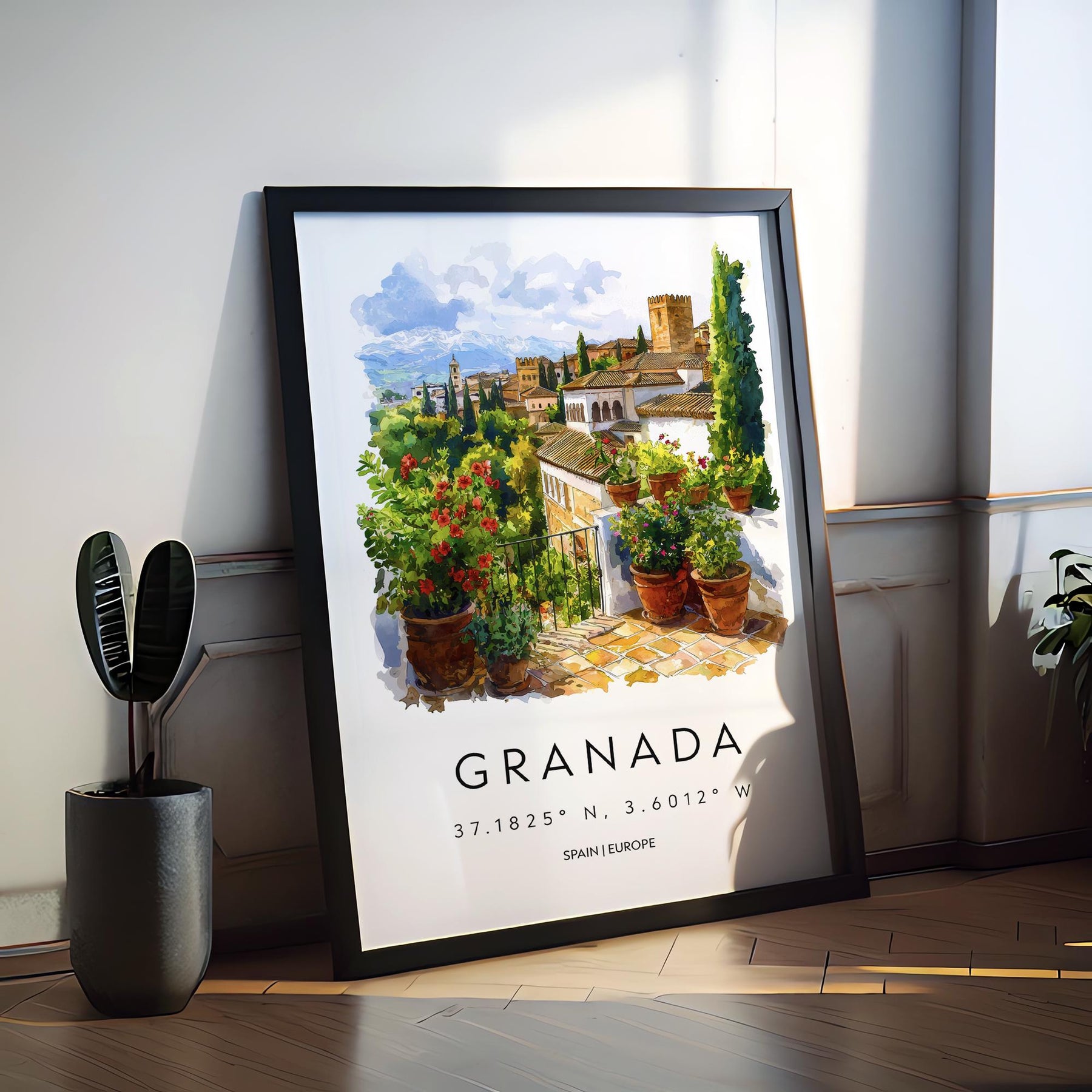 Granada Watercolor Poster Granada Travel Print Granada Wall Art Granada Cityscape Painting Granada Souvenir Spain Decor