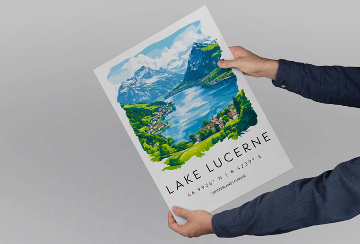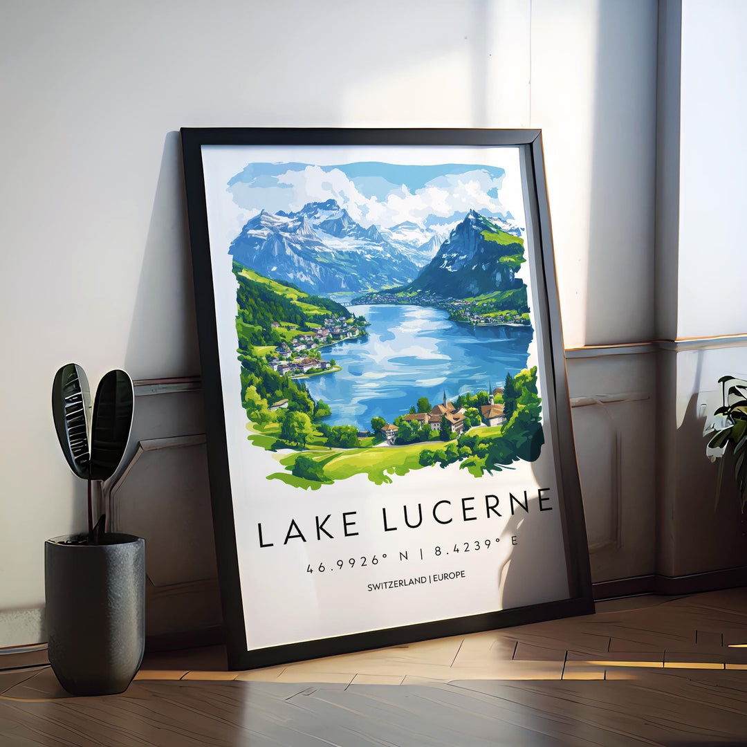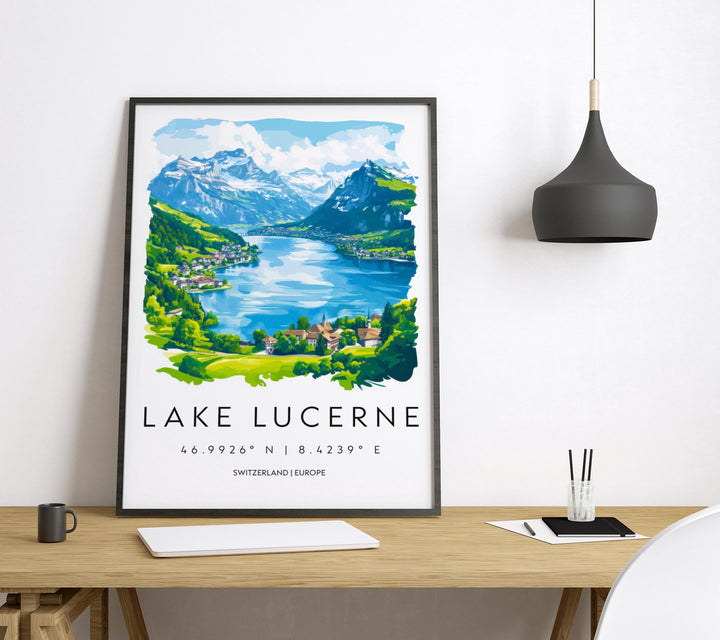 Lake Lucerne Watercolor Poster Wall Art Lake Lucerne Wall Décor Home Décor Lake Lucerne Gift Switzerland Art Lover Gift, Travel Souvenir