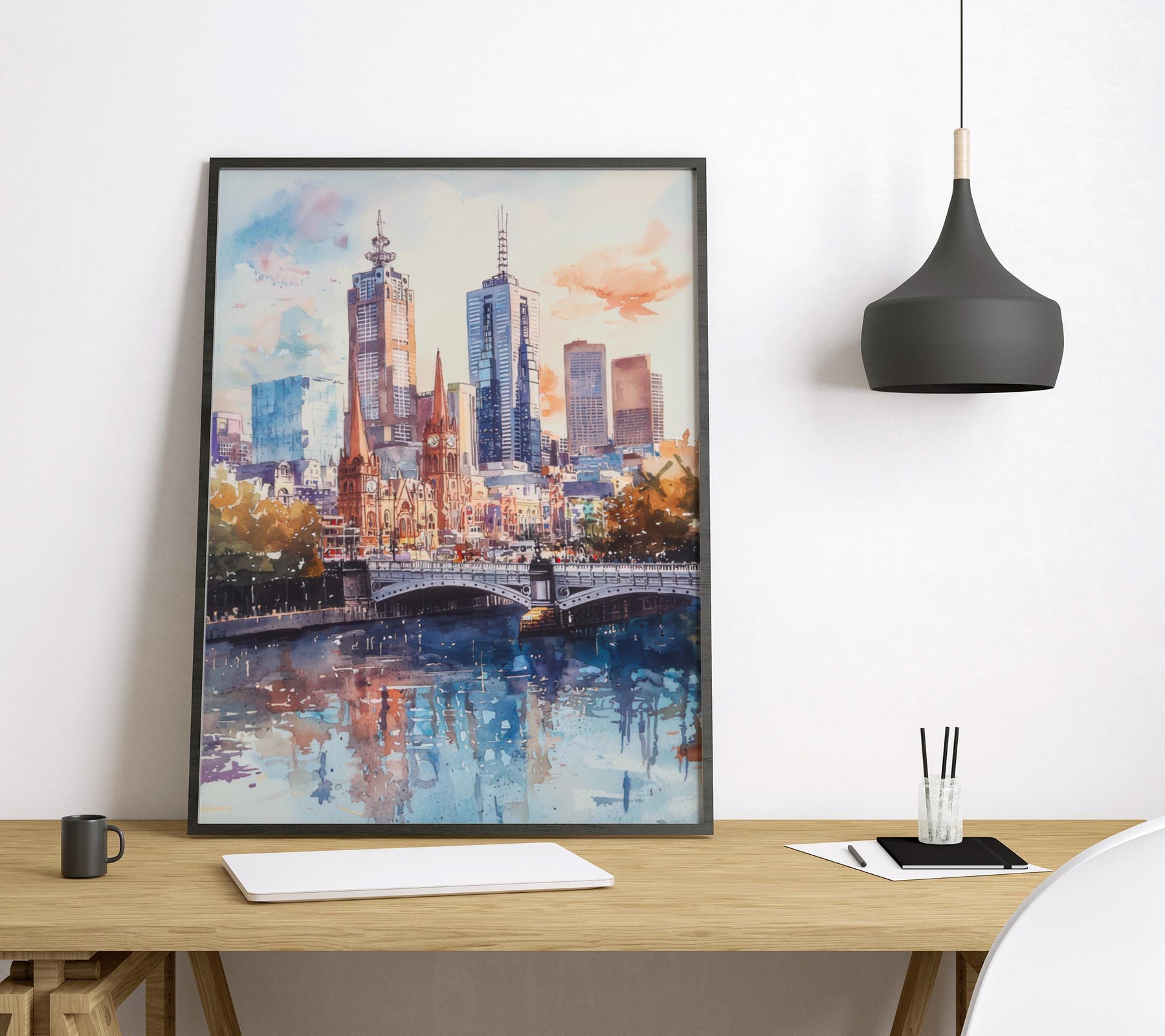 Melbourne Watercolor Poster Melbourne Travel Print Melbourne Wall Art Melbourne Cityscape Painting Australia Souvenir Decor