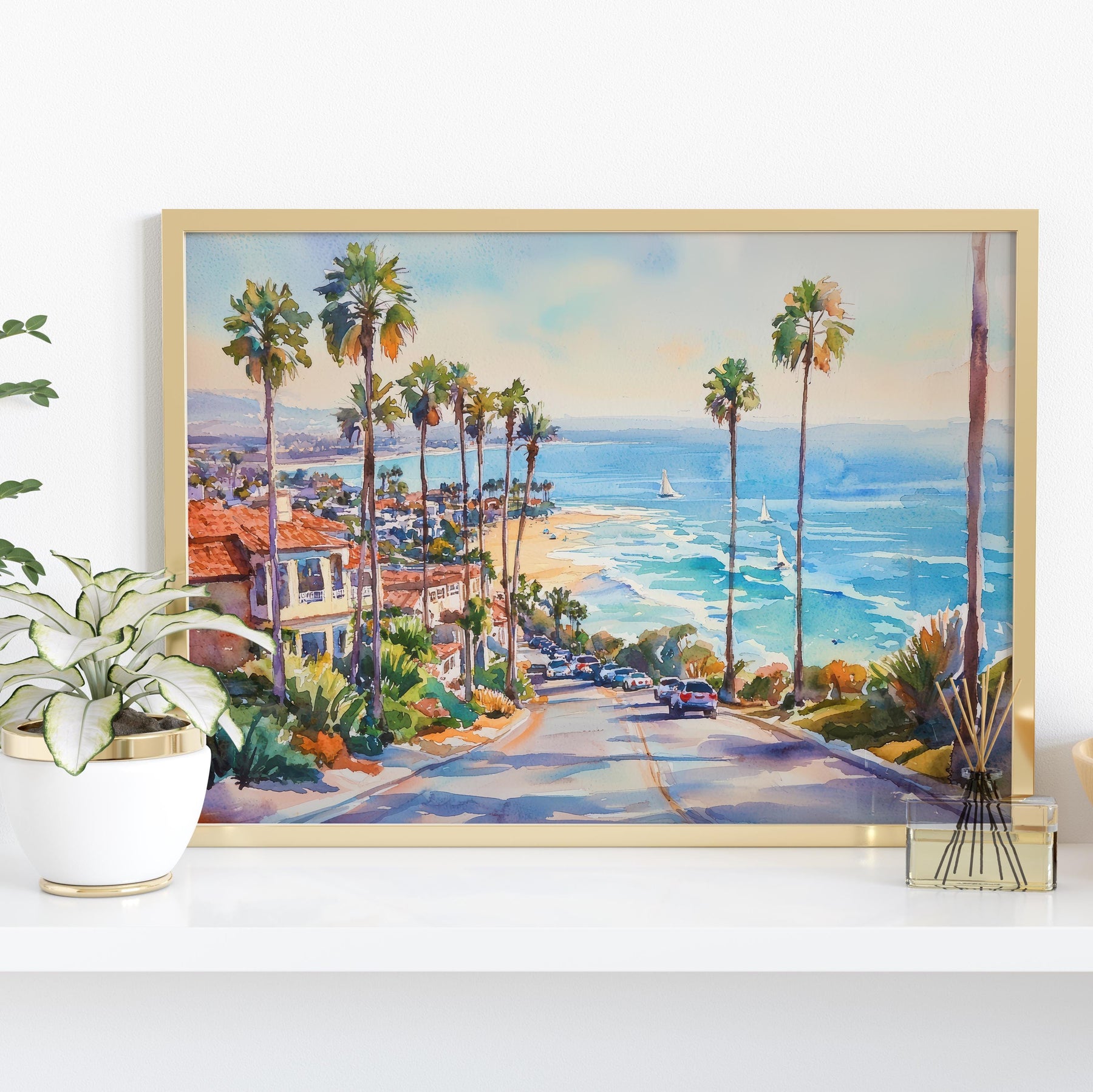 Newport Beach California Watercolor Poster Newport Travel Print Coastal City Painting Ocean Wall Art USA Decor Souvenir