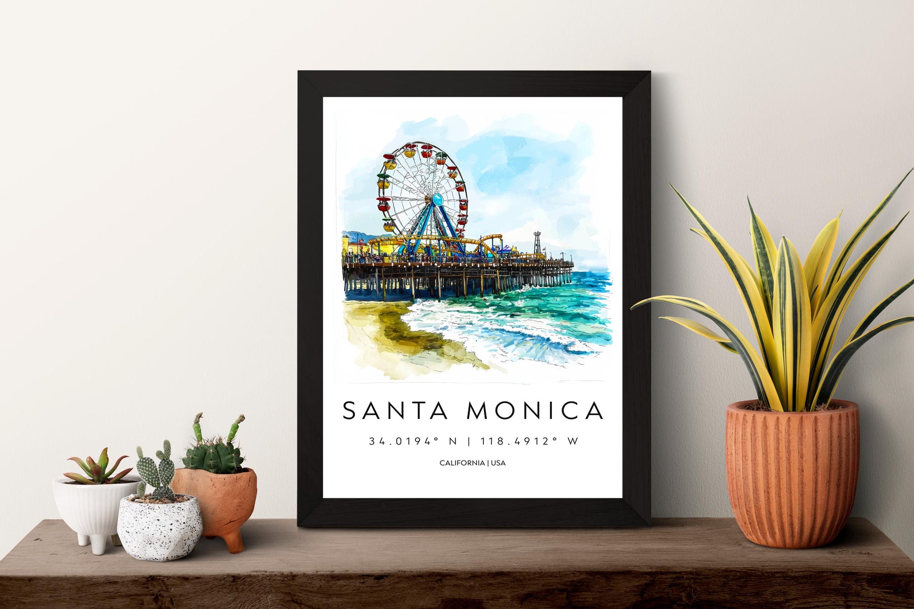 Santa Monica Watercolor Poster Santa Monica California Travel Print Wall Art Santa Monica Home Decor Santa Monica Gift Art Lovers Beach Life