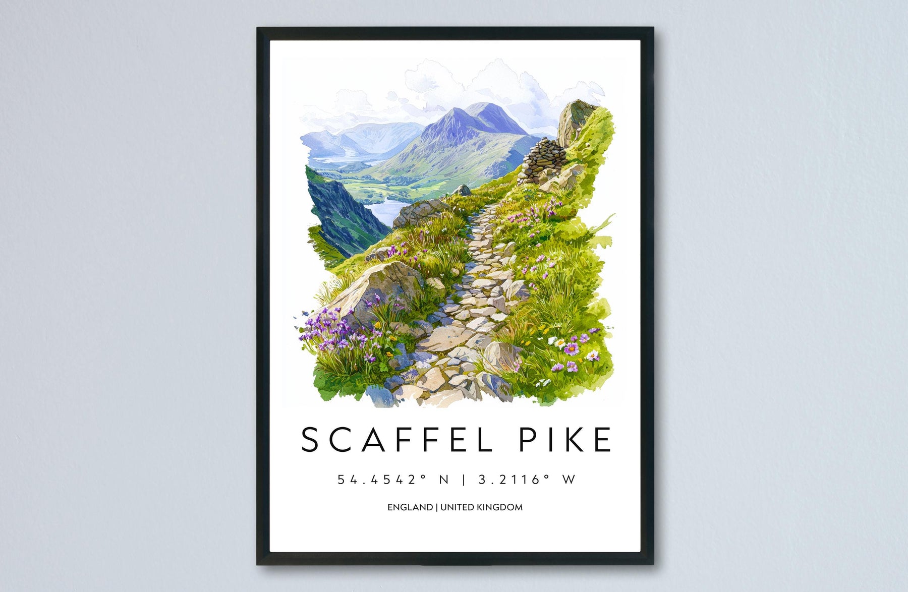Scafell Pike Watercolor Poster Scafell Pike Travel Print Scafell Pike Wall Art Scafell Pike Landscape Painting Scafell Pike Souvenir UK Deco