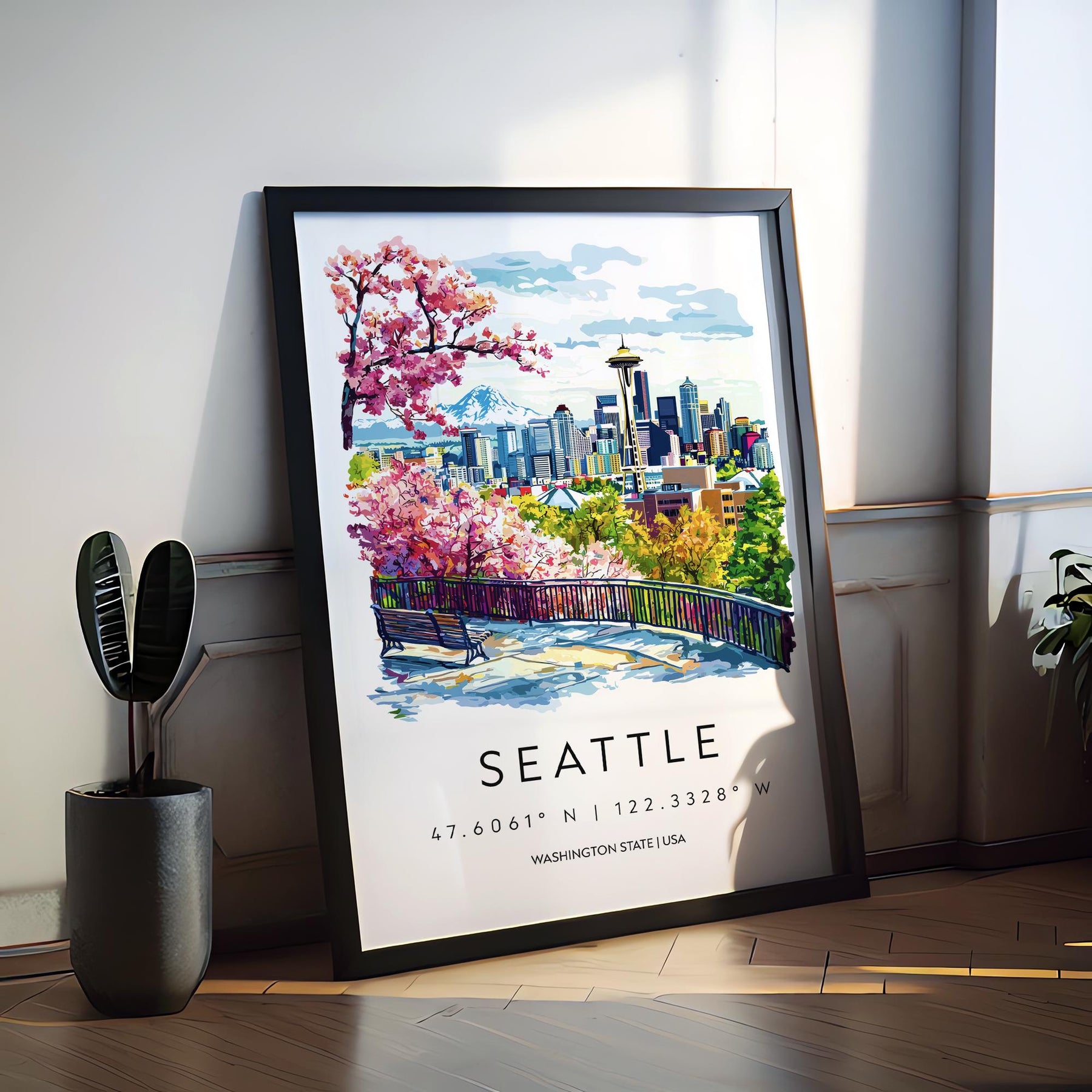 Seattle Watercolor Poster Seattle Travel Print Seattle Wall Art Seattle Cityscape Painting Seattle Souvenir USA Decor