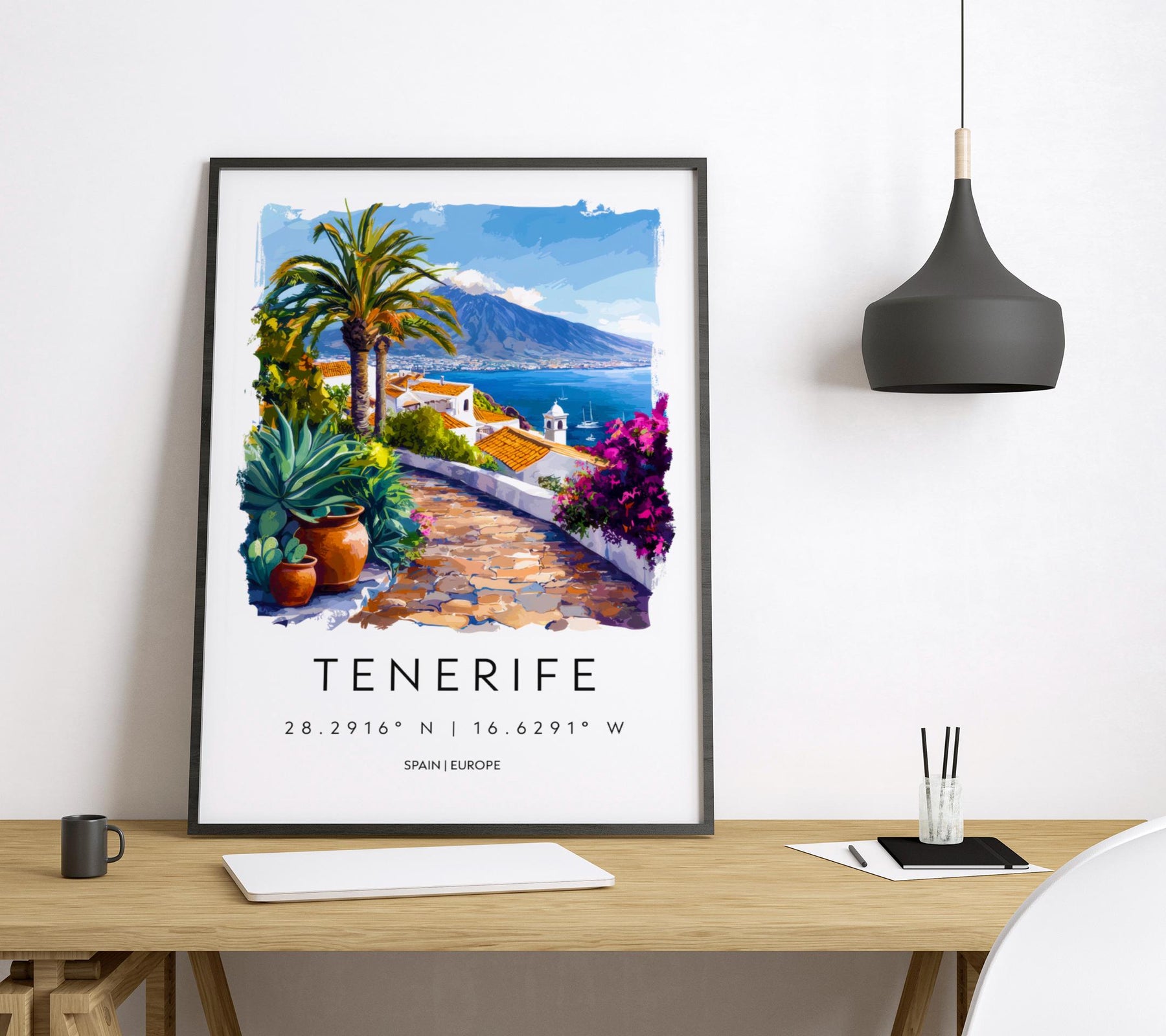 Tenerife Watercolor Poster Tenerife Travel Print Tenerife Wall Art Tenerife Landscape Painting Tenerife Souvenir Spain Island Decor